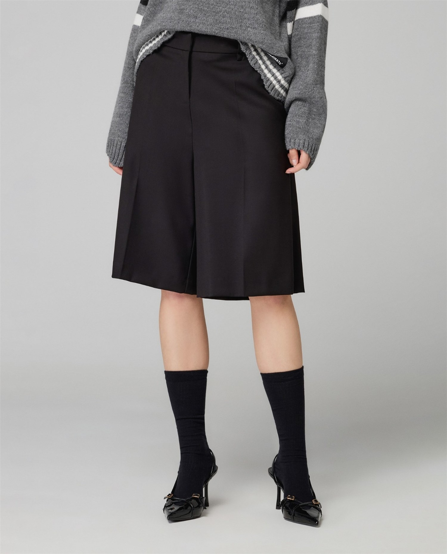 Modello realizzato in twill misto viscosa stretch, tinta unita, chiusura con zip e gancetto, tasca dietro a filo, vestibilità over.