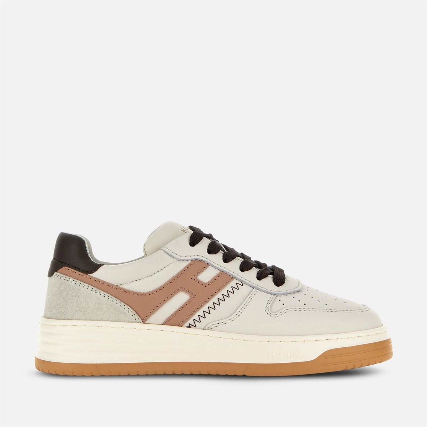 Le sneakers Hogan H630 combinano linee ispirate al mondo del basket e stilemi tipici del brand. La tomaia in pelle nappa con inserti in pelle è caratterizzata da un'H allungata che gira intorno al tallone. La suola è in EVA extralight, con logo in rilievo sul lato e righe sfumate che reinterpretano le iconiche scanalature Rebel. Must-have del guardaroba contemporaneo, questo dinamico modello è completato da una soletta in memory foam che assicura morbidezza e ammortizzazione.