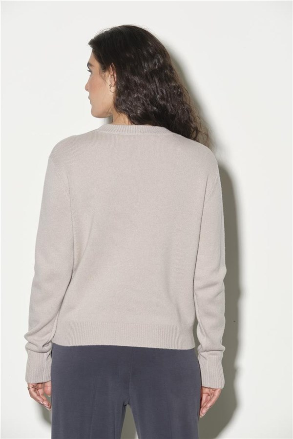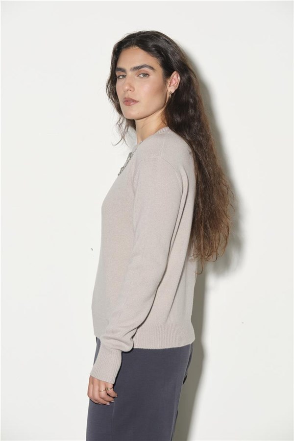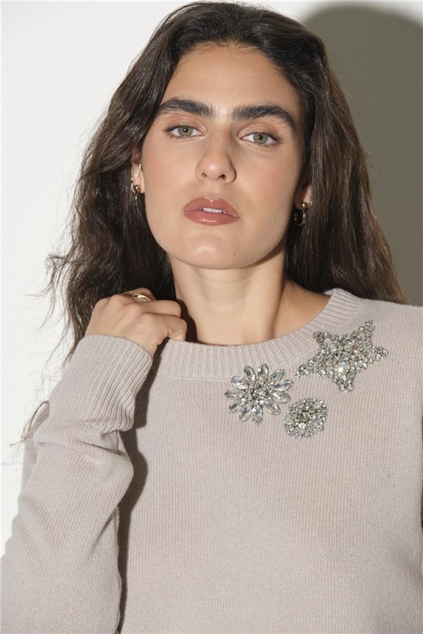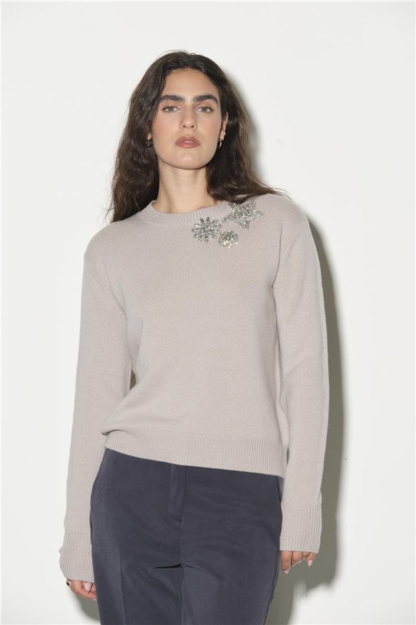 Maglia a girocollo con maniche lunghe, ricamo cabochon e dettagli a coste.