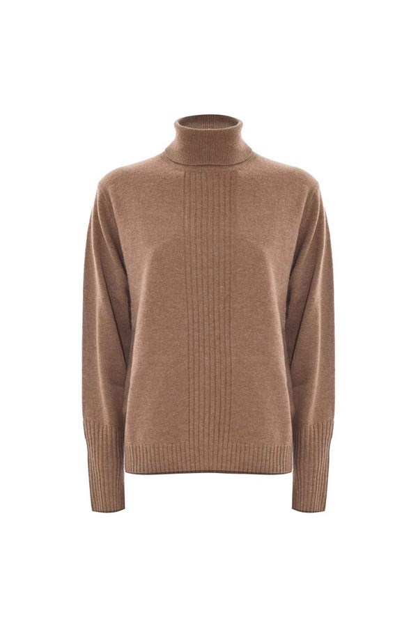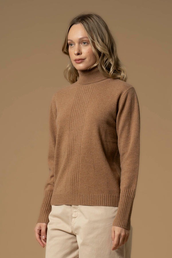 Elegante e raffinata,questa maglia a collo alto in lana è caratterizzata da un inserto a costine sottili sul davanti, un dettaglio che regala carattere e movimento allo stile classico del capo.