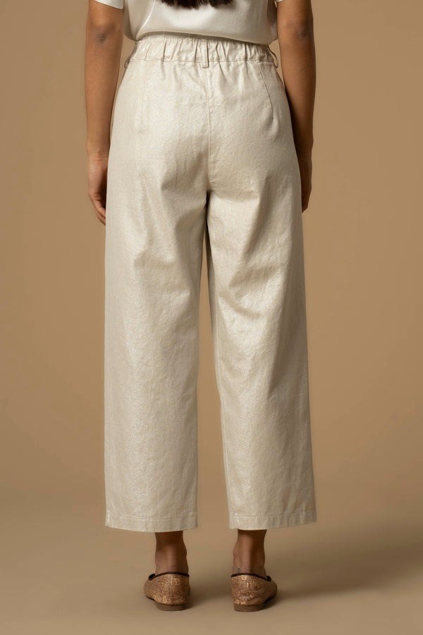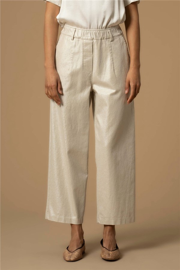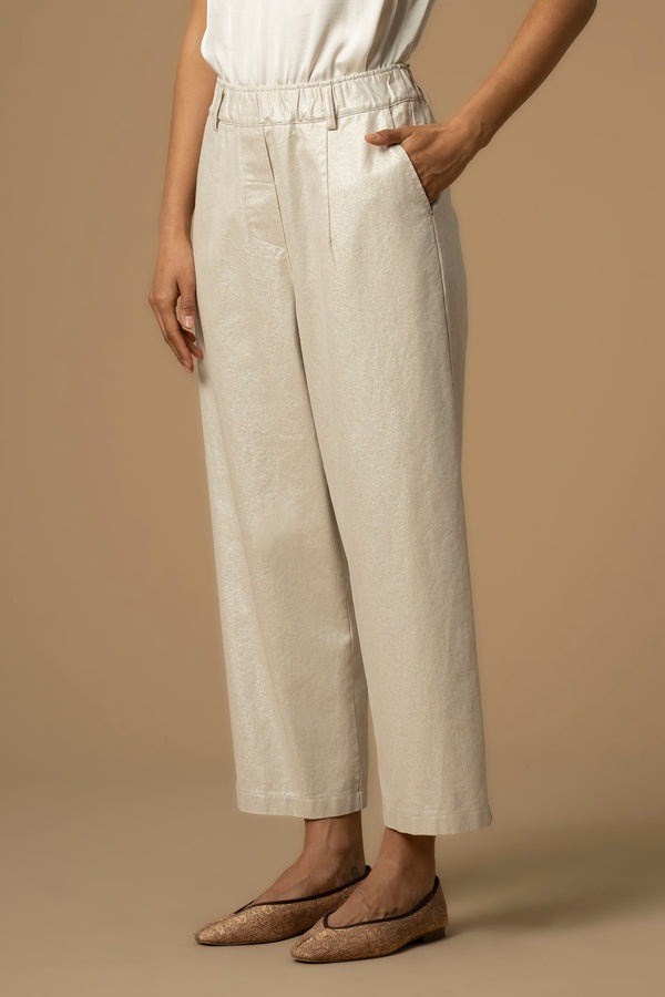 Un capo che non può mancare nel guardaroba all seasons: questi pantaloni cropped in cotone, impreziositi da un tessuto effetto lucido, presentano un taglio dritto, fascia elastica e passanti in vita, pinces e tasche.