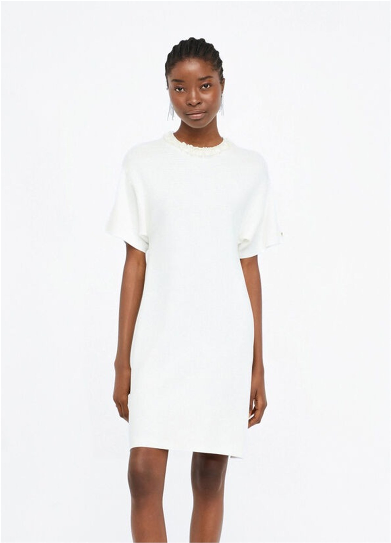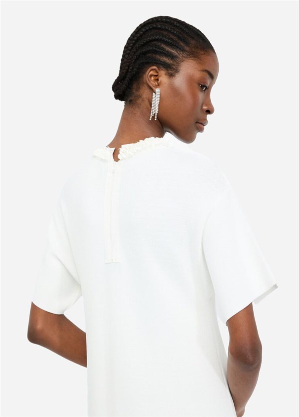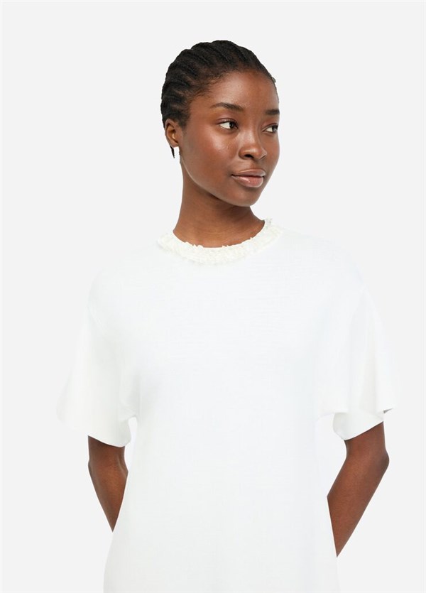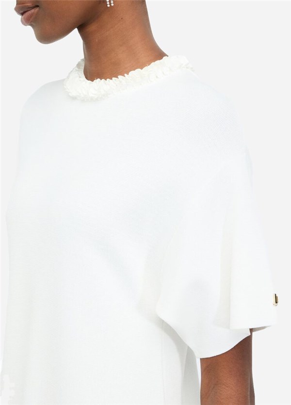 - Taglio girocollo con paillettes applicate