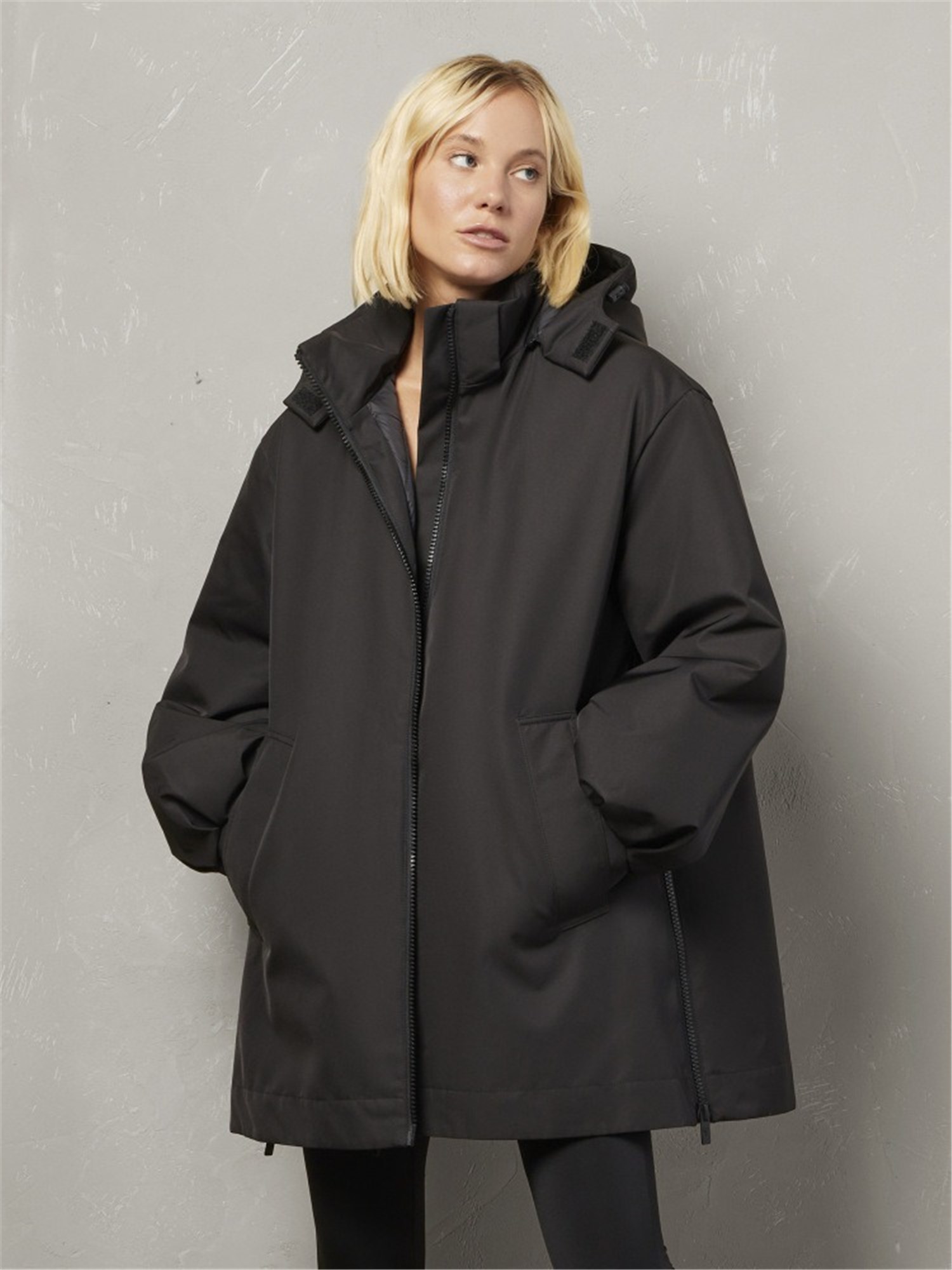 Moderno e ricercato, il giaccone Essy imbottito combina design distintivo e funzionalità. L’imbottitura fissa con fondo parzialmente libero dona al capo un aspetto strutturato, arricchito dalle aperture laterali con zip e puller personalizzati per maggiore comfort. La zip frontale con doppio puller personalizzato e le tasche laterali offrono praticità quotidiana. Il cappuccio removibile con stopper consente di adattare facilmente il look, valorizzato dalla manica a palloncino che aggiunge volume e carattere. Il logo sulla manica destra completa il design con un dettaglio iconico.