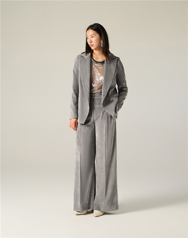 Linee morbide e texture avvolgente per un look che unisce stile vintage e contemporaneità. Questo blazer Manila Grace, realizzato in velluto a costine dal finish opaco, è la scelta ideale per chi ama capi ricercati e comodi. Il taglio sartoriale con chiusura monopetto lo rende versatile, da indossare sia con il pantalone coordinato che su denim o abiti fluidi.