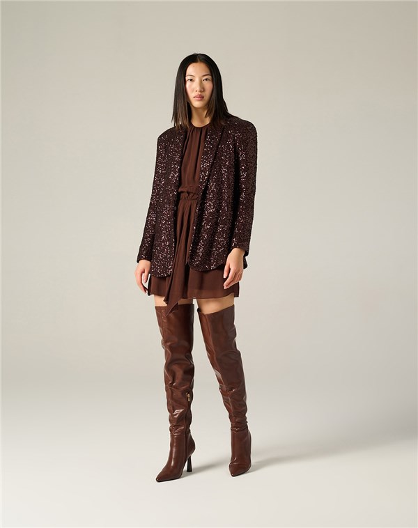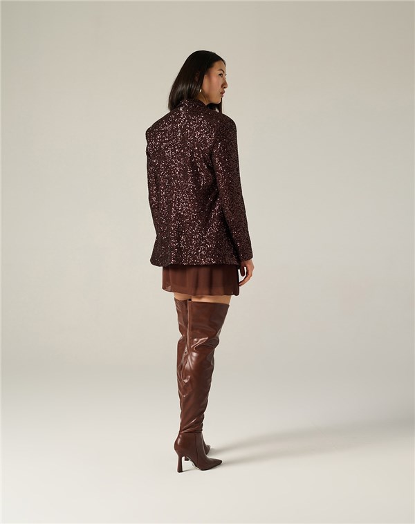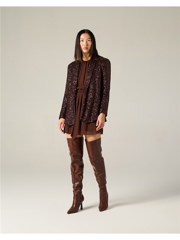 Questo blazer Manila Grace è pensato per chi ama brillare con stile e carattere. Realizzato in tessuto ricoperto di paillettes ton sur ton, unisce l’anima glamour a una linea sartoriale pulita. Il taglio dritto, il rever classico e la chiusura a un bottone lo rendono perfetto sia per eventi serali che per creare outfit dallo spirito rock-chic anche di giorno. Indossalo su denim per un contrasto audace o su pantaloni coordinati per un total look da palcoscenico.