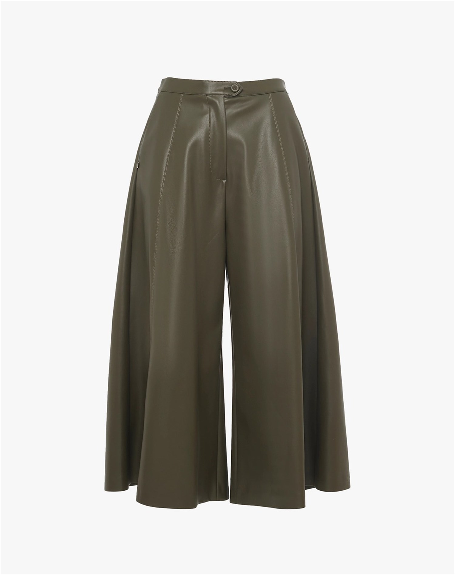 Il pantalone in ecopelle Manila Grace dona un twist audace al guardaroba di stagione. Caratterizzato da un taglio ampio e strutturato, presenta eleganti pinces frontali che valorizzano la silhouette. Il design è completato da passanti in vita, chiusura con bottone e zip e cuciture sul fondo gamba per un tocco moderno. Perfetto da abbinare a camicie morbide o maglie fitted per outfit dal forte impatto visivo.