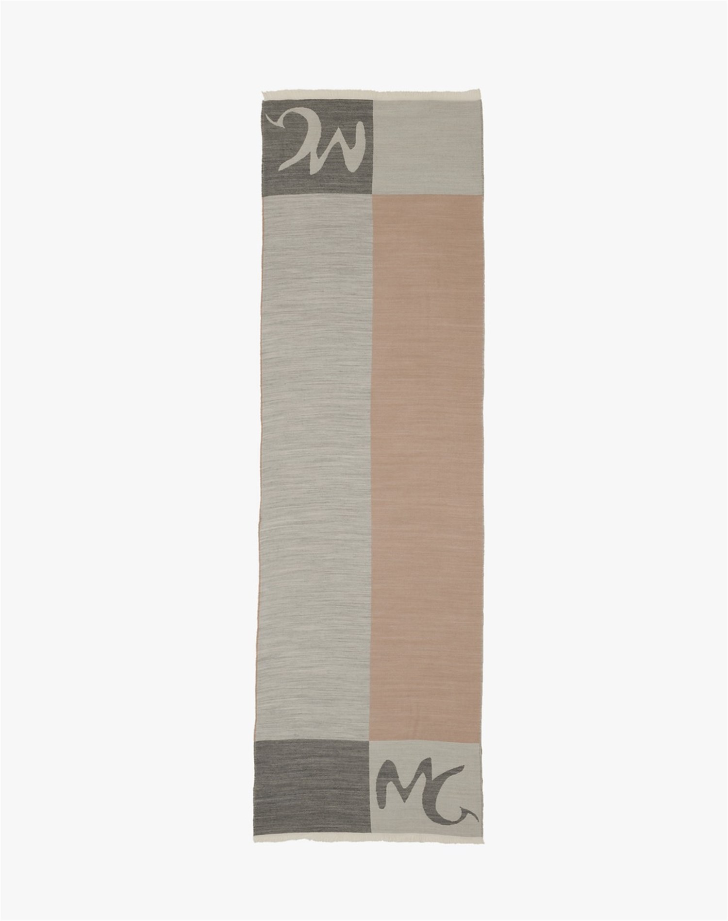 Sciarpa con disegnatura block color nei toni neutri del grigio e del cammello.