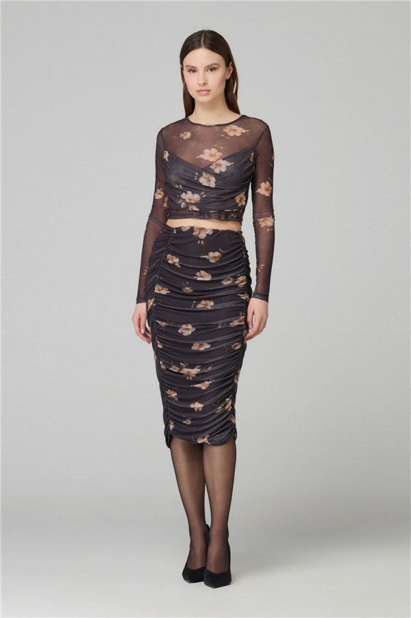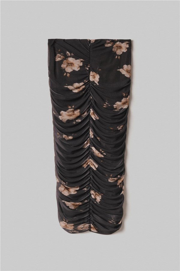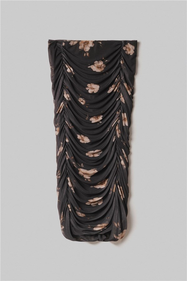 Longuette In Tulle Con Arricciatura Gardenia Nero Mar de Margaritas - Nerea