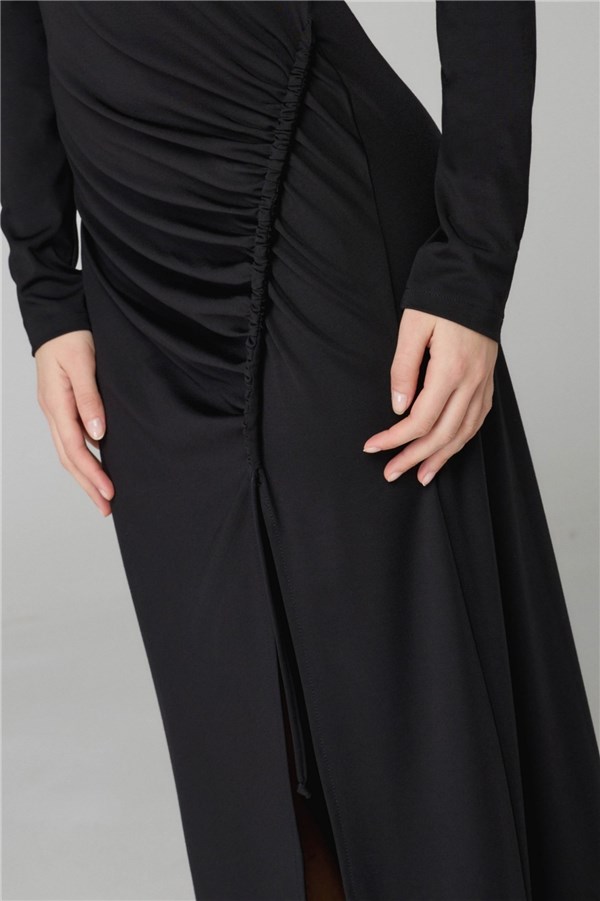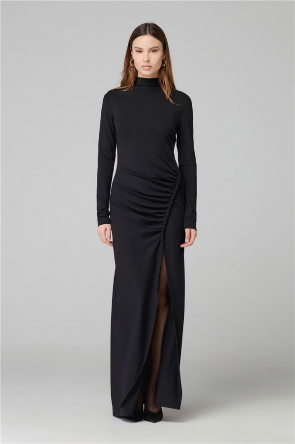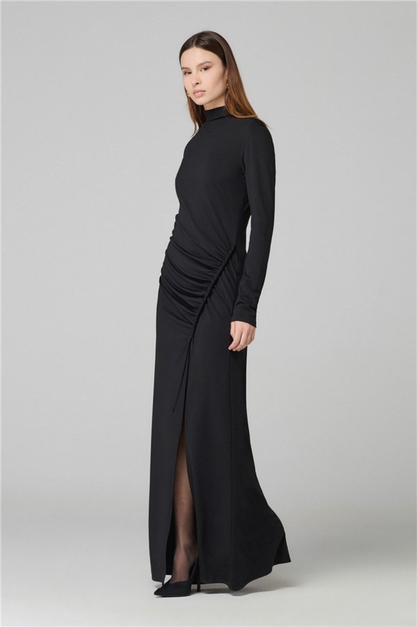 Abito Lungo A Lupetto Con Arricciatura Nero Mar de Margaritas - Silvy