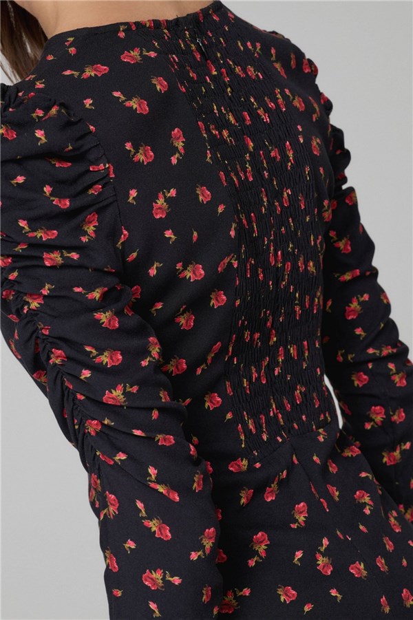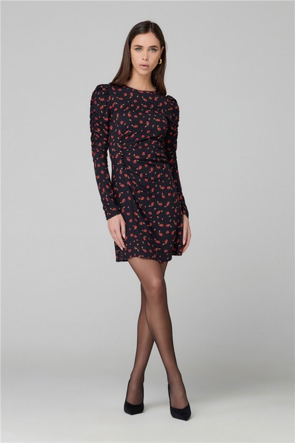 Dora - Abito Corto Girocollo Burgeon Nero Mar de Margaritas