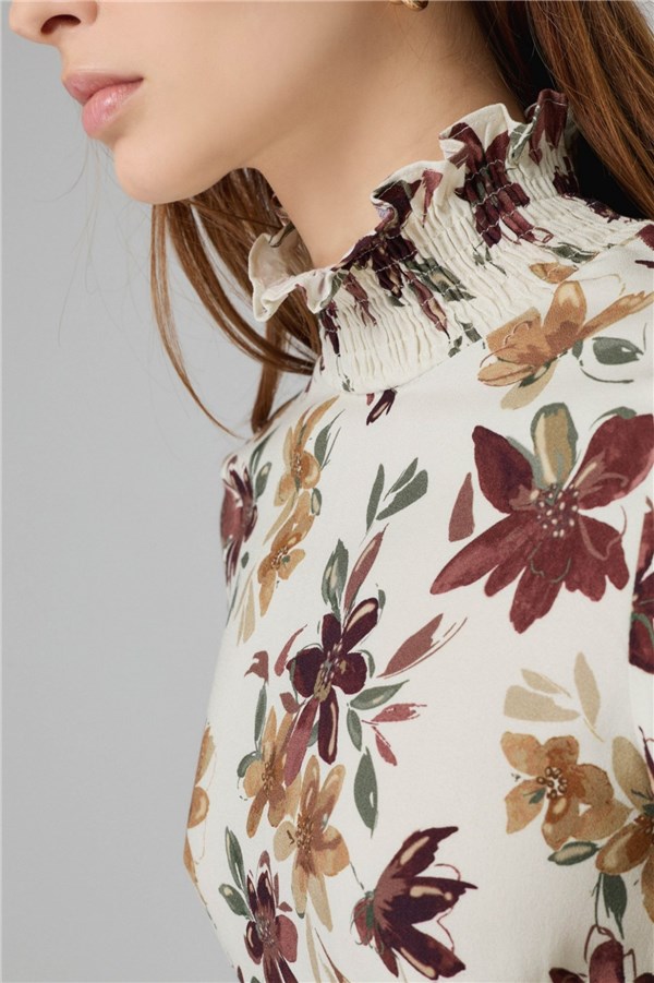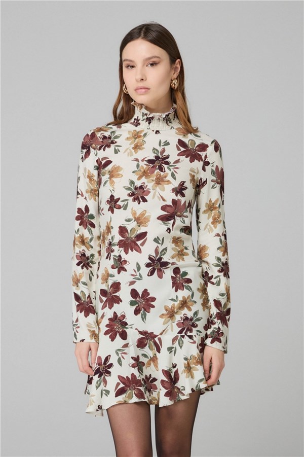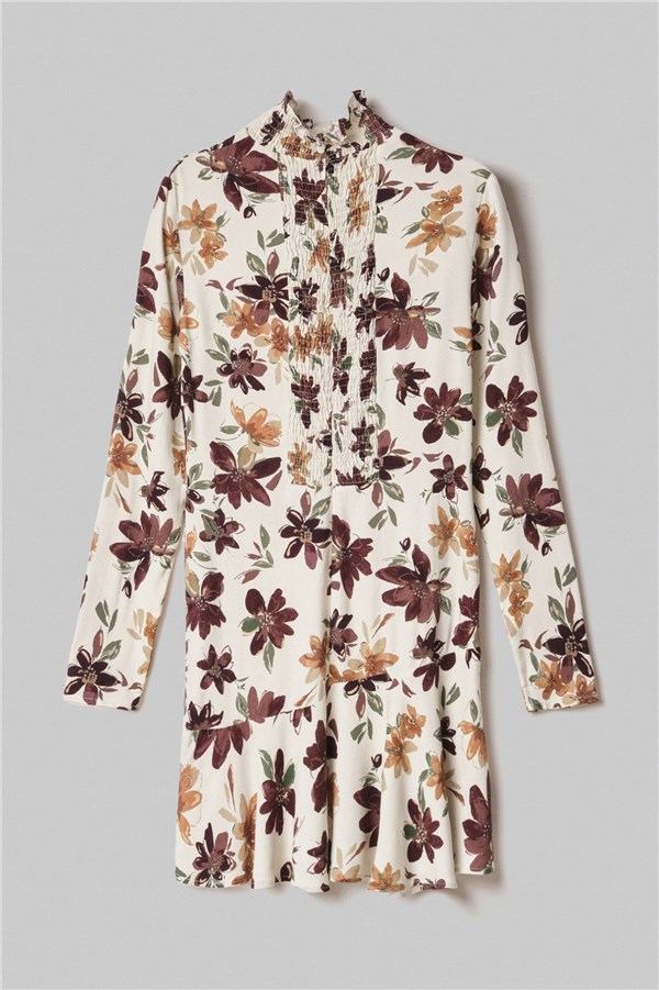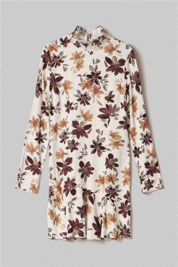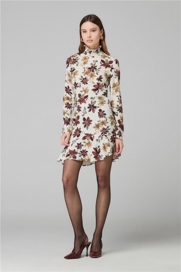 Abito corto con collo alto Lotus Ecru Mar de Margaritas