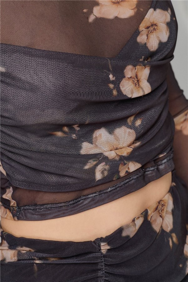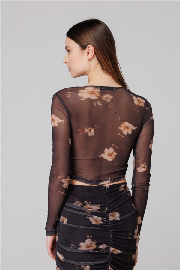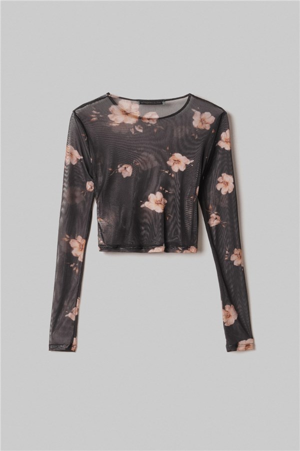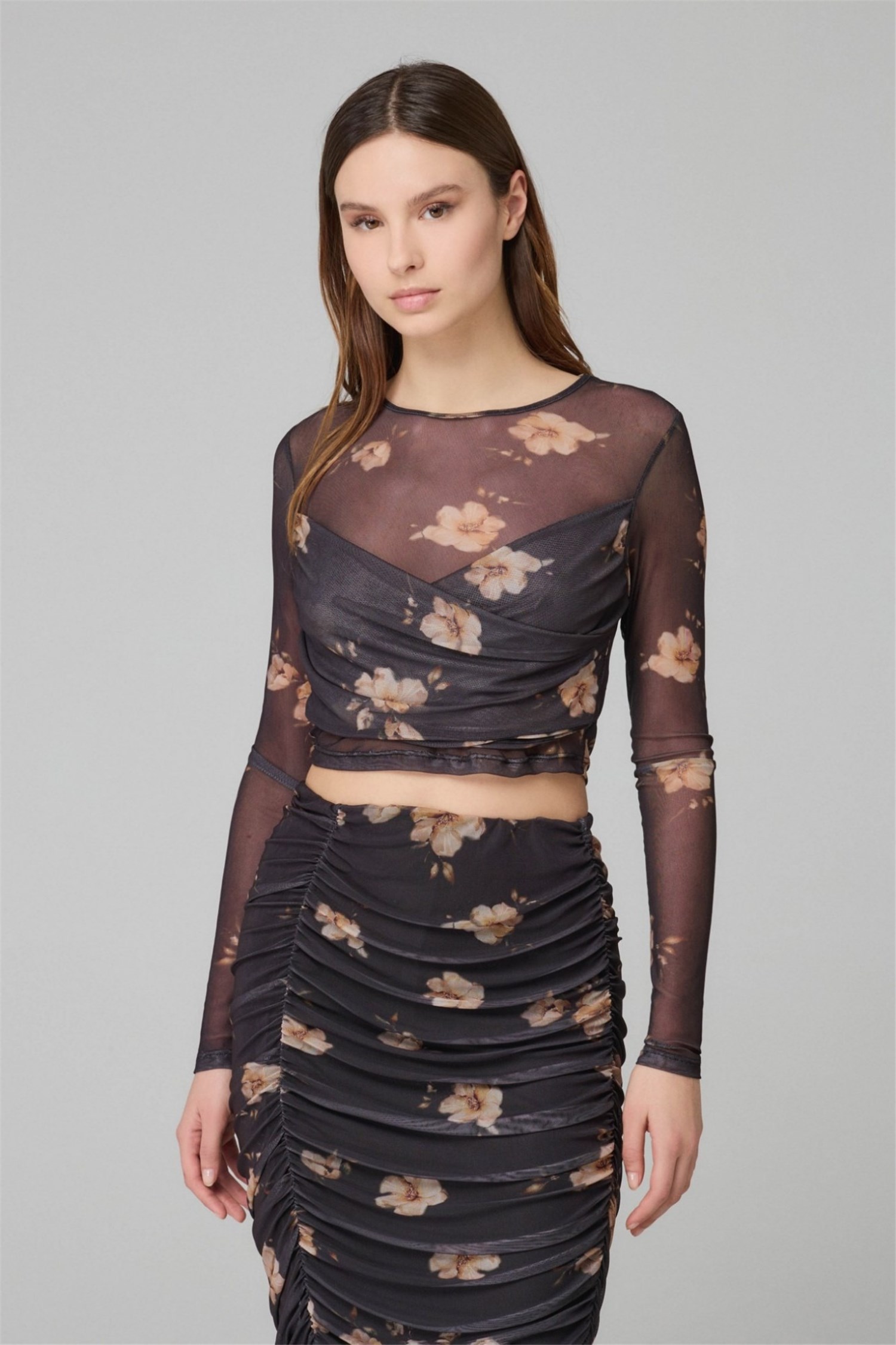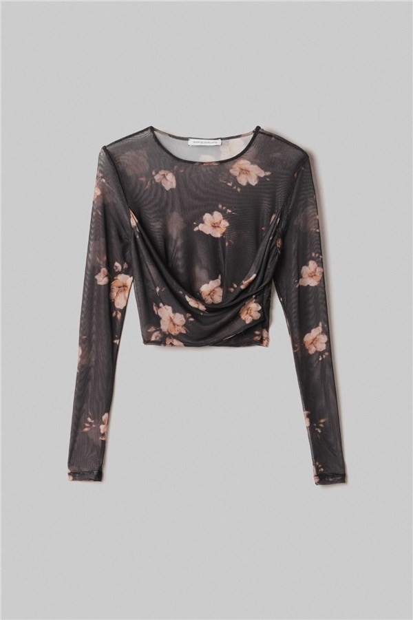 Top Manica Lunga In Tulle Gardenia Nero Mar de Margaritas - Corinna
