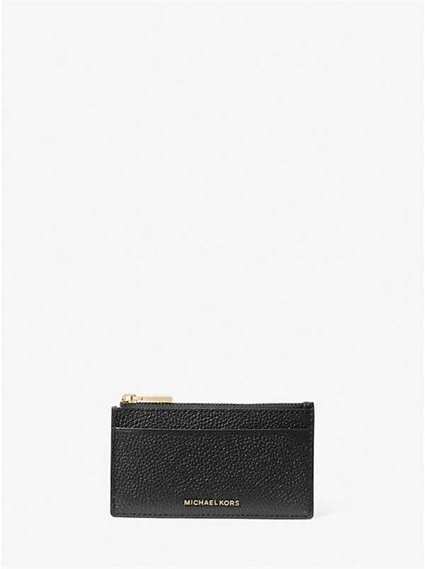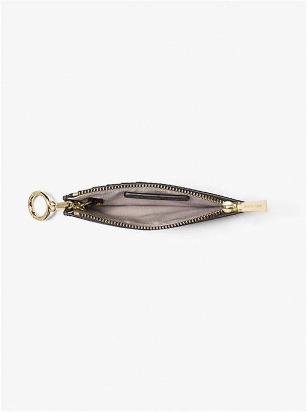 Questo accessorio compatto della gamma Jet Set mantiene le tue carte perfettamente organizzate. Realizzato in pregiata pelle martellata con dettagli in metallo tonalità oro, presenta una chiusura con zip e un comodo portachiavi. Per le tue commissioni o una serata fuori, questo porta carte è il compagno perfetto. Grazie alla speciale confezione, è un'idea regalo perfetta.