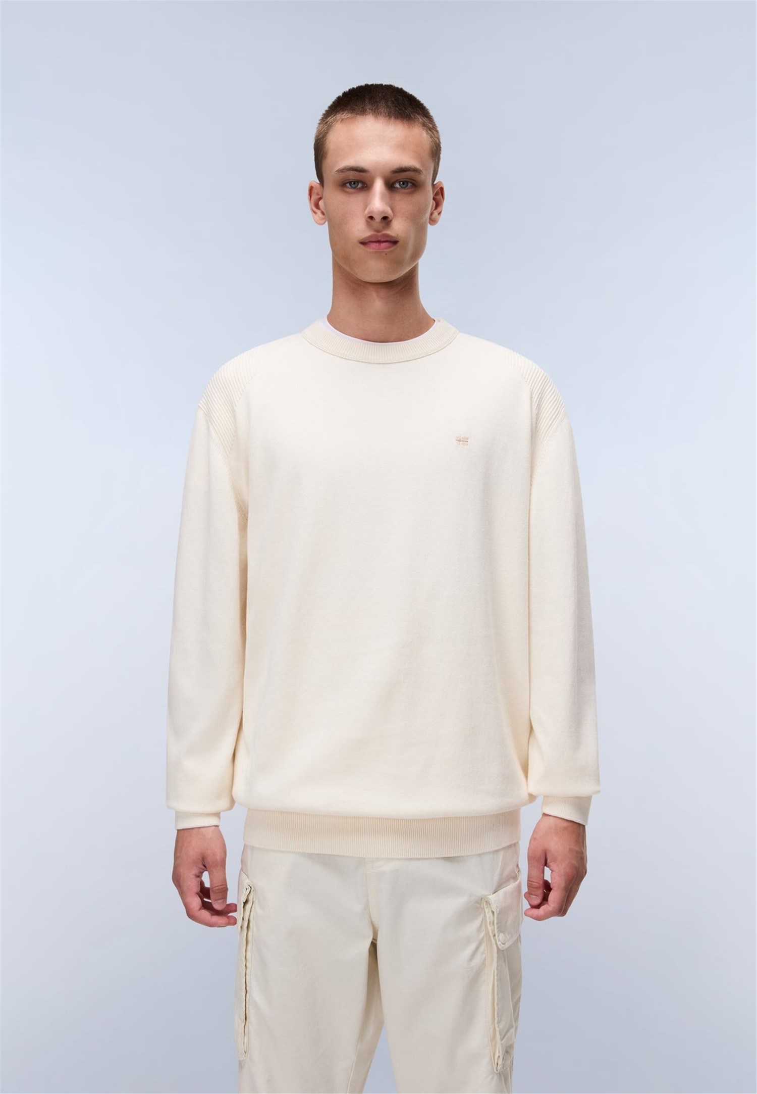 Realizzato in 100% cotone di peso medio, il maglione Aren unisce una silhouette elegante e raffinata a una costina spessa sul collo, sui polsini e sull'orlo. È rifinito con un nastro arancione all'interno del collo, dettagli ricamati e una piccola grafica della bandiera norvegese sul petto.