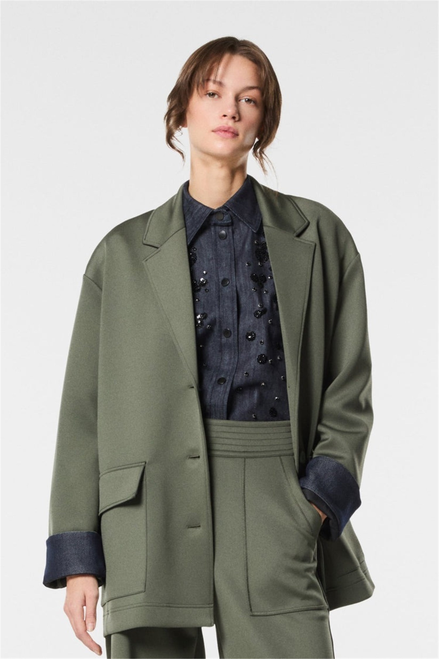 Giacca monopetto in scuba, dal taglio pulito e moderno. Il tessuto tecnico conferisce struttura e comfort, mantenendo la forma con eleganza. Perfetta per look versatili, dona un tocco contemporaneo a ogni outfit, unendo praticità e stile con un design essenziale e raffinato.