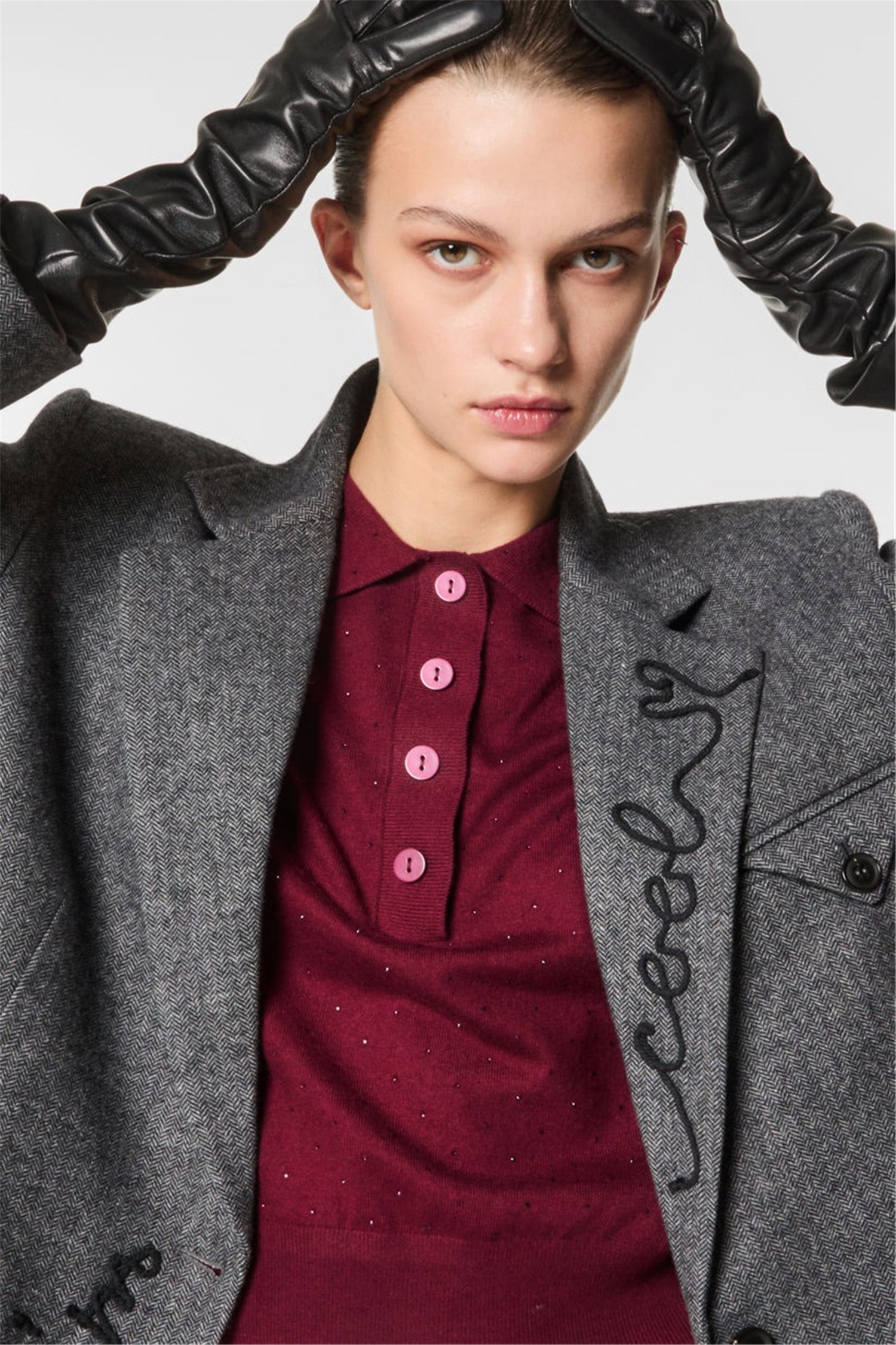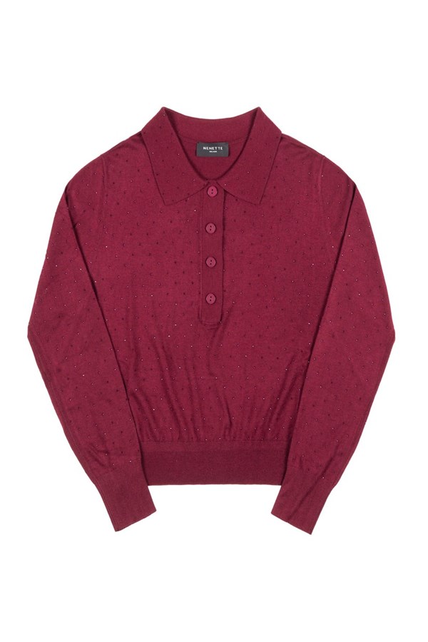 Luminosità e stile si incontrano in questa maglia polo impreziosita da ricami di strass all over. Un capo raffinato che dona carattere e femminilità a ogni outfit. Perfetta per un look elegante ma disinvolto, si abbina facilmente a pantaloni o gonne, diventando protagonista del guardaroba contemporaneo.