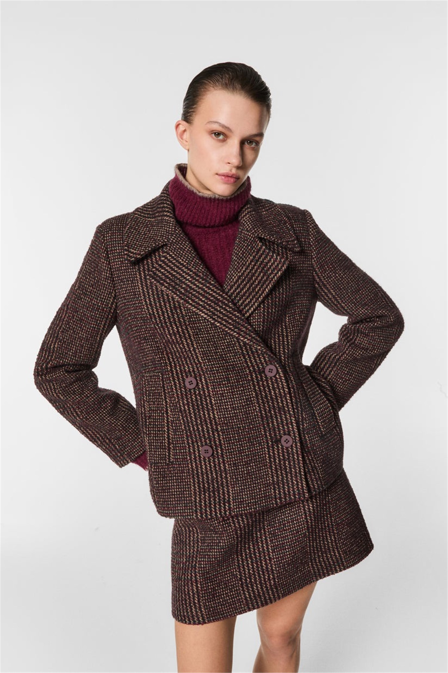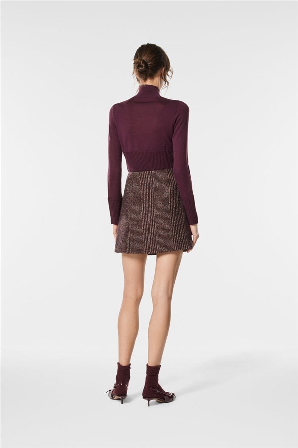 Raffinata e contemporanea, questa gonna corta in panno di lana con fantasia maschile dona carattere e femminilità al look. Perfetta per un outfit casual-chic, è ideale da abbinare in coordinato con la giacca per creare un completo sofisticato, versatile e sempre attuale.