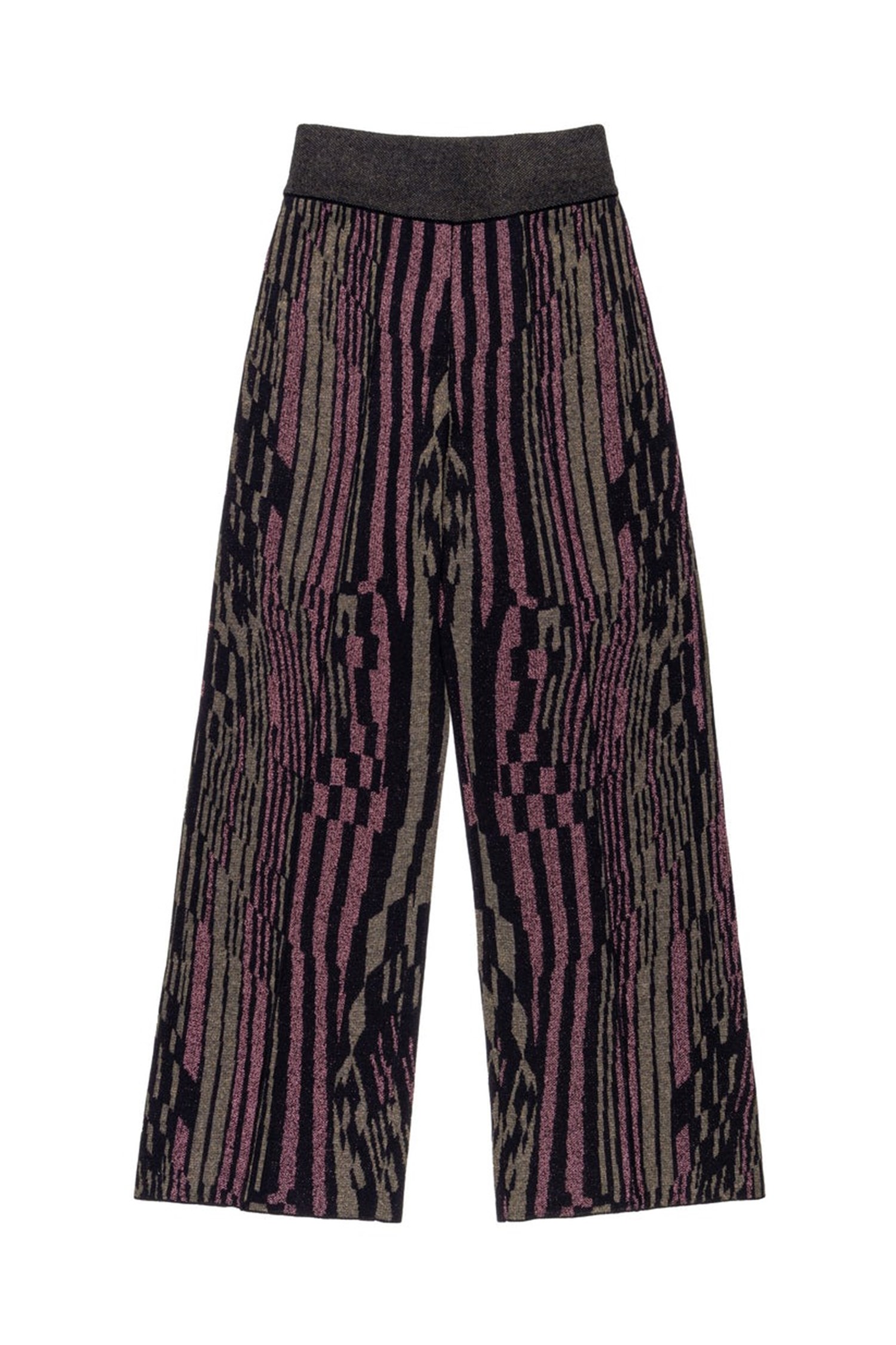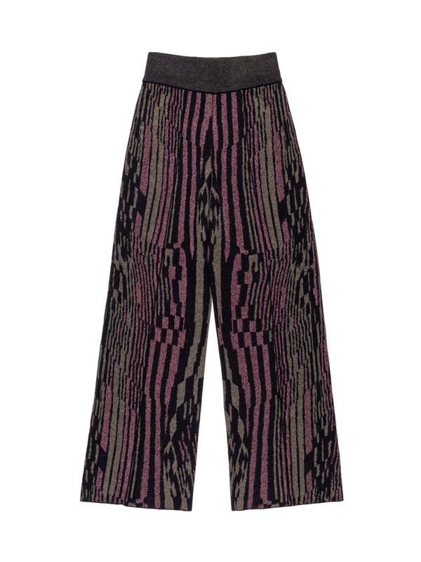 Pantalone in maglia jacquard con raffinata fantasia geometrica. Morbido e confortevole, dona un tocco sofisticato anche agli outfit casual-chic. Perfetto da abbinare a maglie essenziali o camicie per un look moderno e disinvolto.
