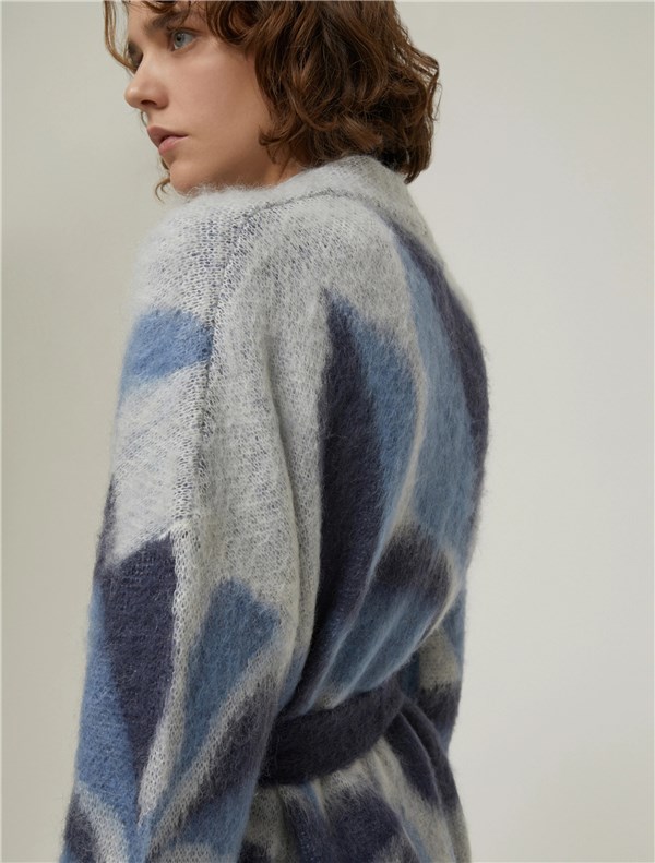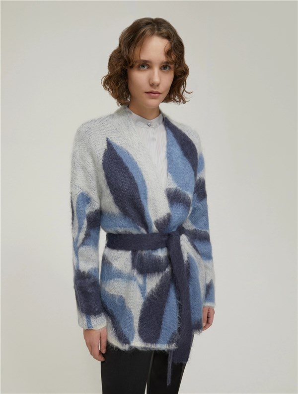 Pronto a diventare protagonista dei migliori outfit invernali, il cardigan in mohair blend trasforma in sapienti lavorazioni jacquard i pattern creati per Pennyblack dall’artista britannica Eloise Renouf.