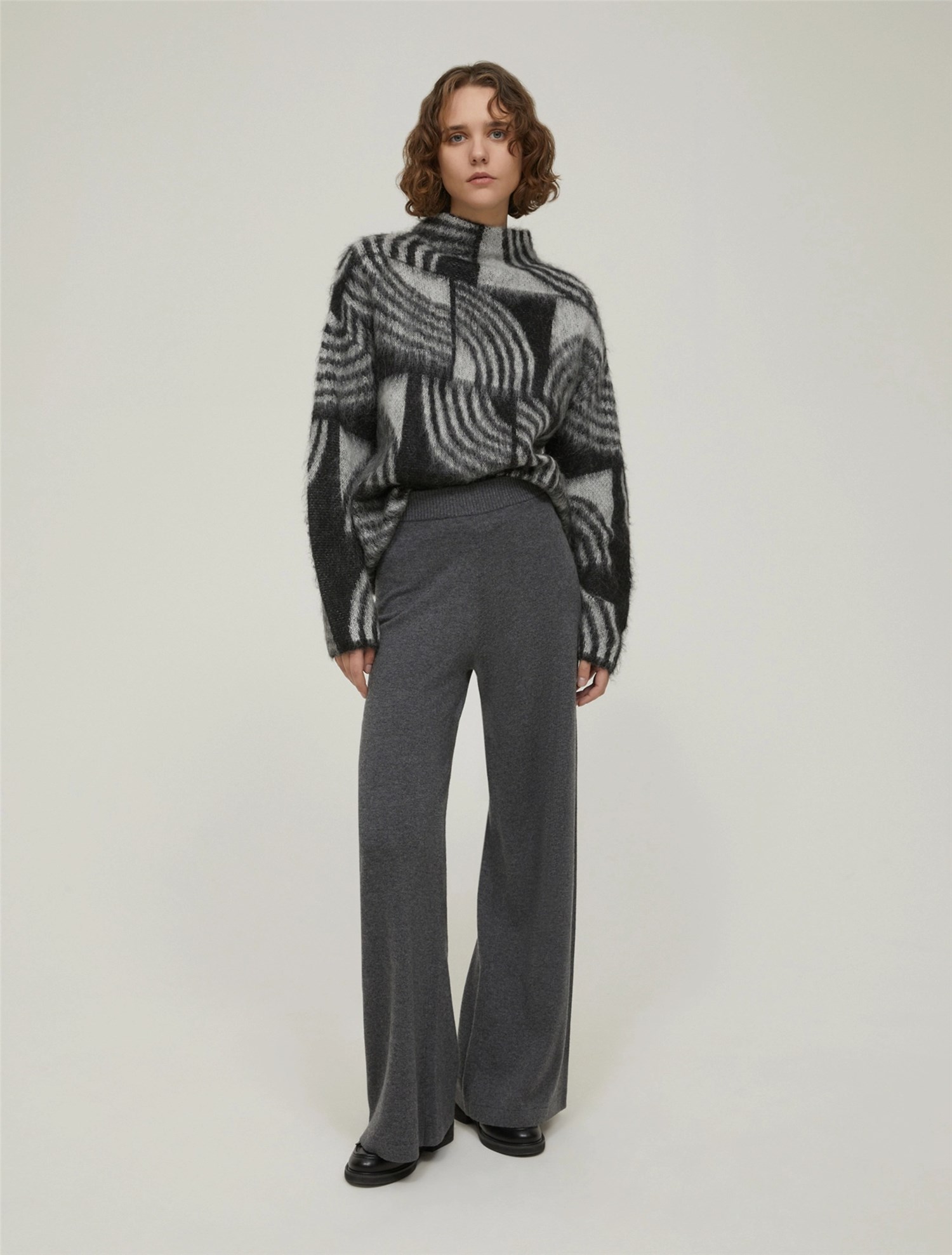 In equilibrio tra il comfort dei joggers l’eleganza delle linee a palazzo, questi pantaloni in maglia sono facili da mixare e compongono una tuta sporty chic con il cardigan coordinato.