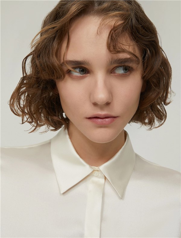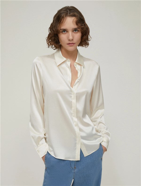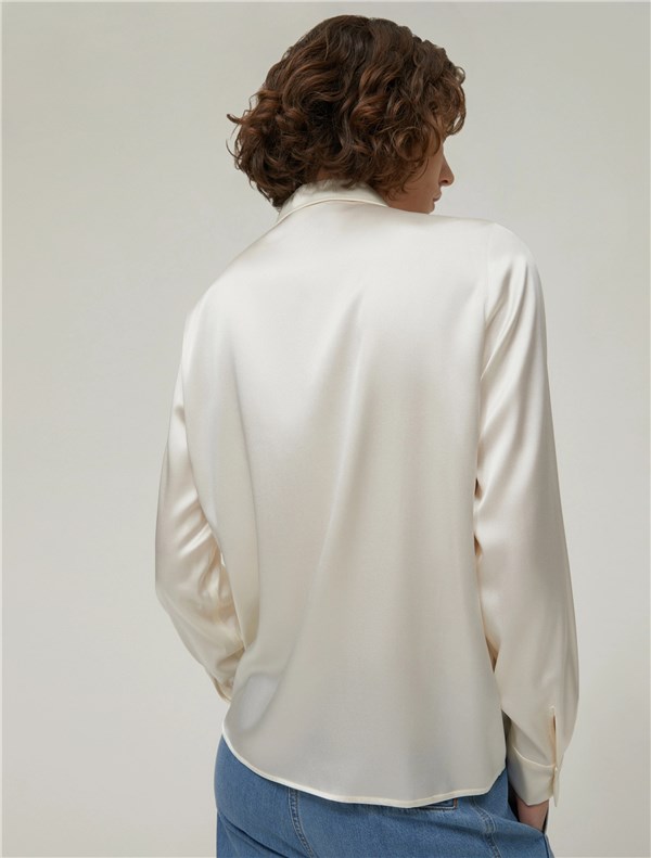 Chic passe-partout, la camicia in raso di seta è perfetta per ogni abbinamento, dal tailleur sartoriale ai jeans.
