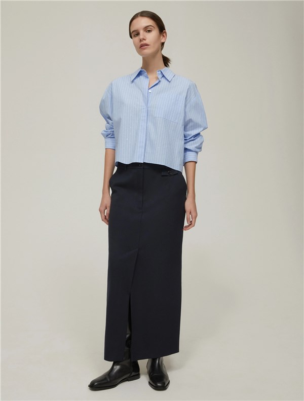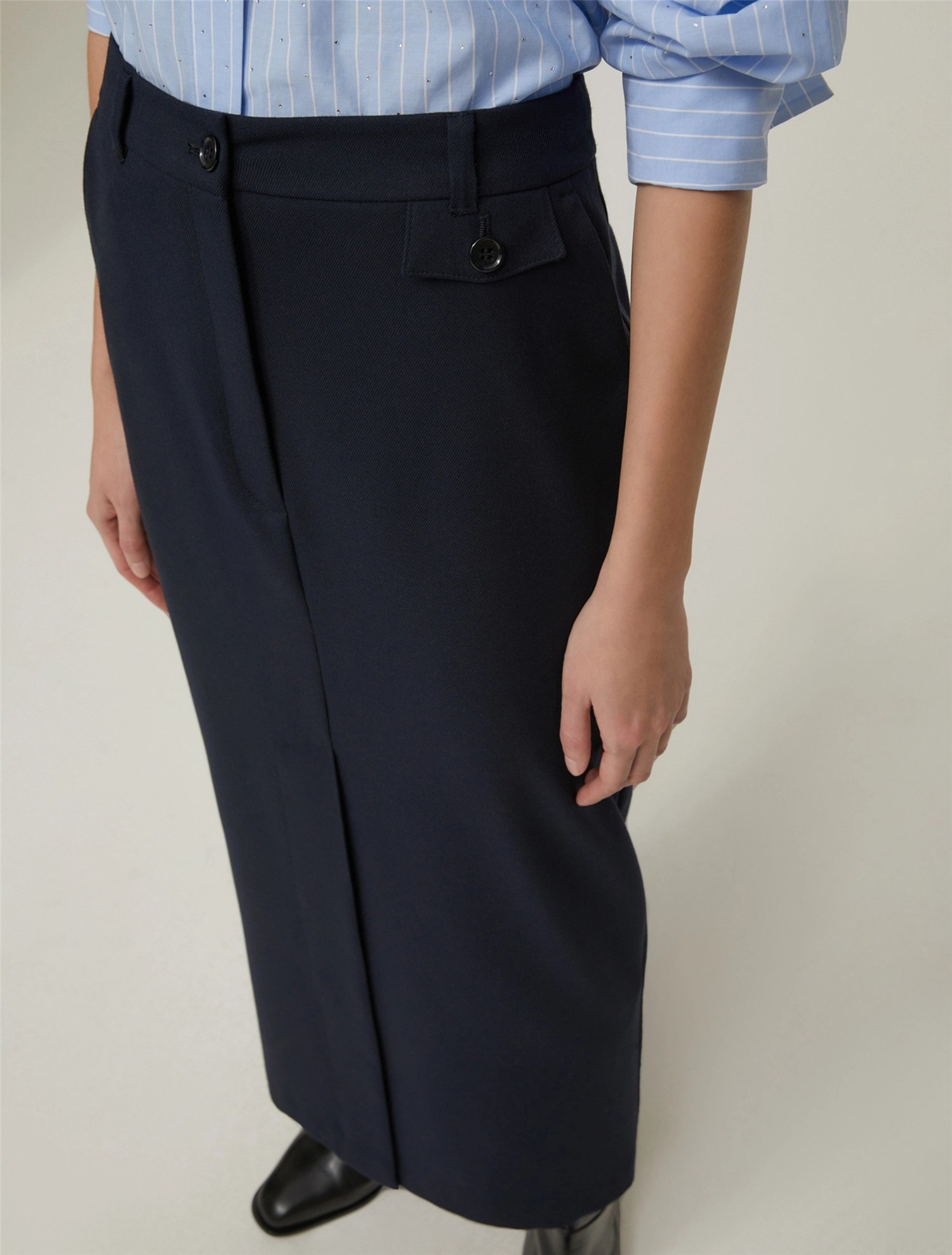 Essenziale nel guardaroba da città, ecco la gonna a colonna d’ispirazione sartoriale: basta una camicia maschile per un look perfetto.
