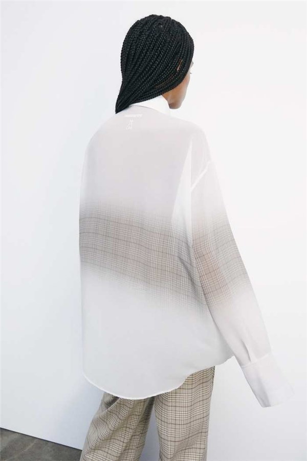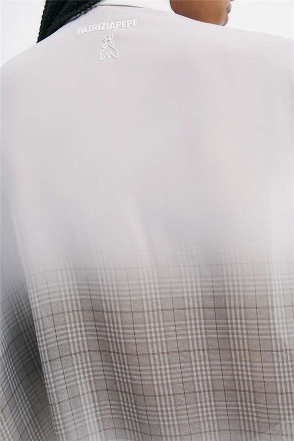 Realizzata in leggerissimo chiffon, la camicia oversize con motivo check stampato a livello del busto, si distingue per la sua estrema fluidità e versatilità. Un capo essenziale nel guardaroba di stagione, ideale da abbinare al tailoring contemporaneo iconico di Patrizia Pepe per look dall'eleganza rilassata, o con una longuette aderente per un sofisticato gioco di volumi.