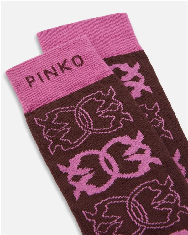 Calzini medi in misto cotone stretch personalizzati con il logo Love Birds jacquard all over sul gambale e il logo lettering PINKO jacquard sul bordo. Il modello è completato da bordo superiore, tallone e punta in una tonalità a contrasto ed è perfetto per aggiungere un dettaglio casual e brioso al tuo look quotidiano.