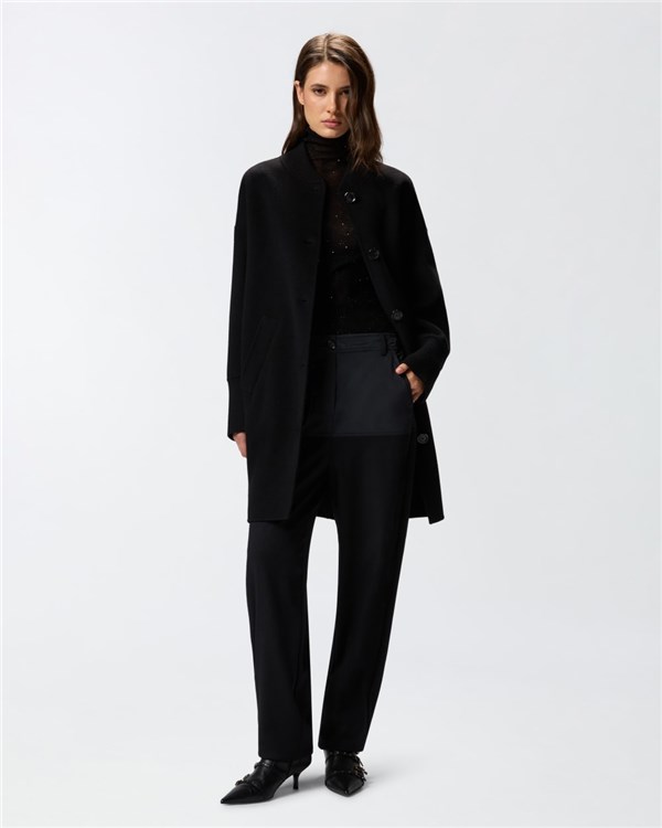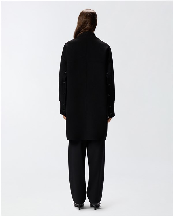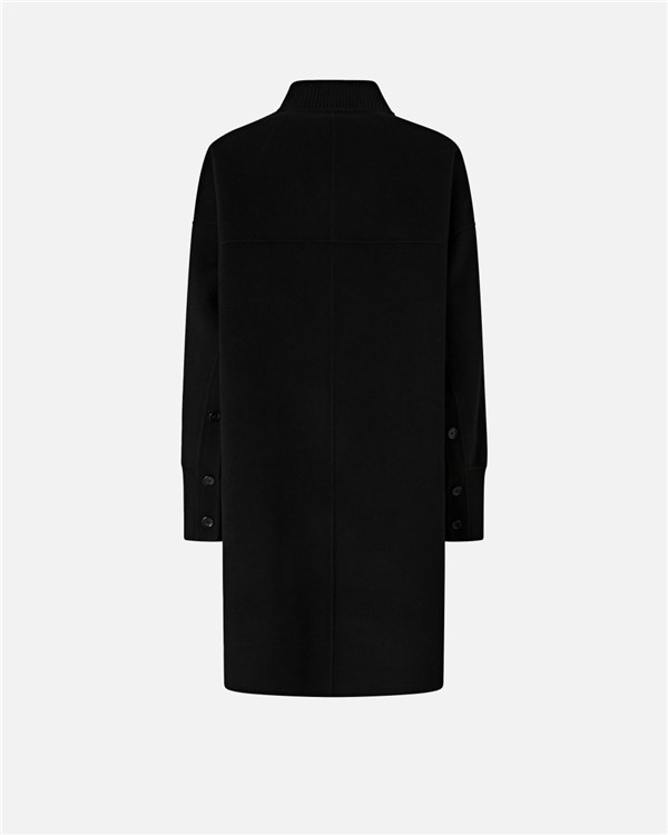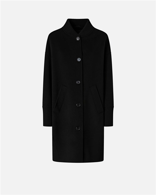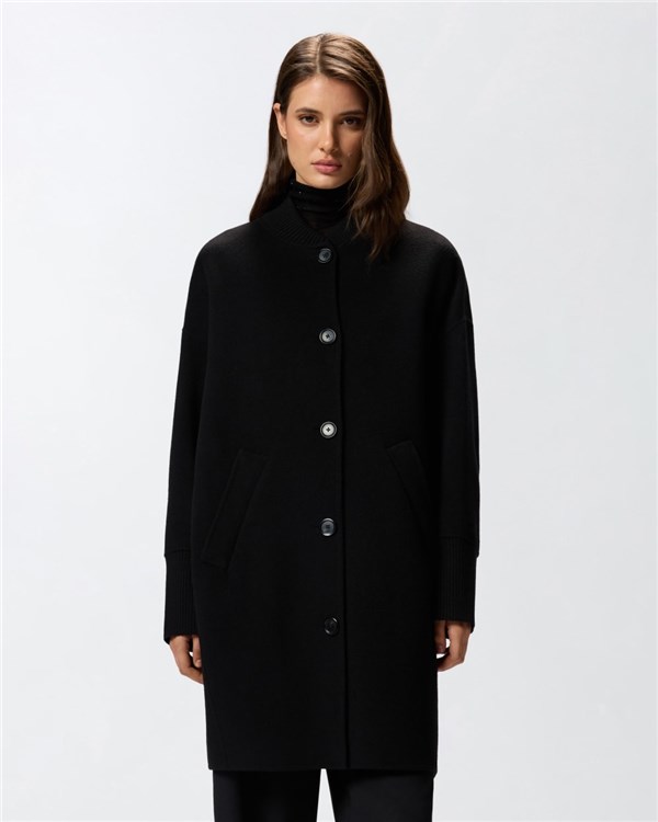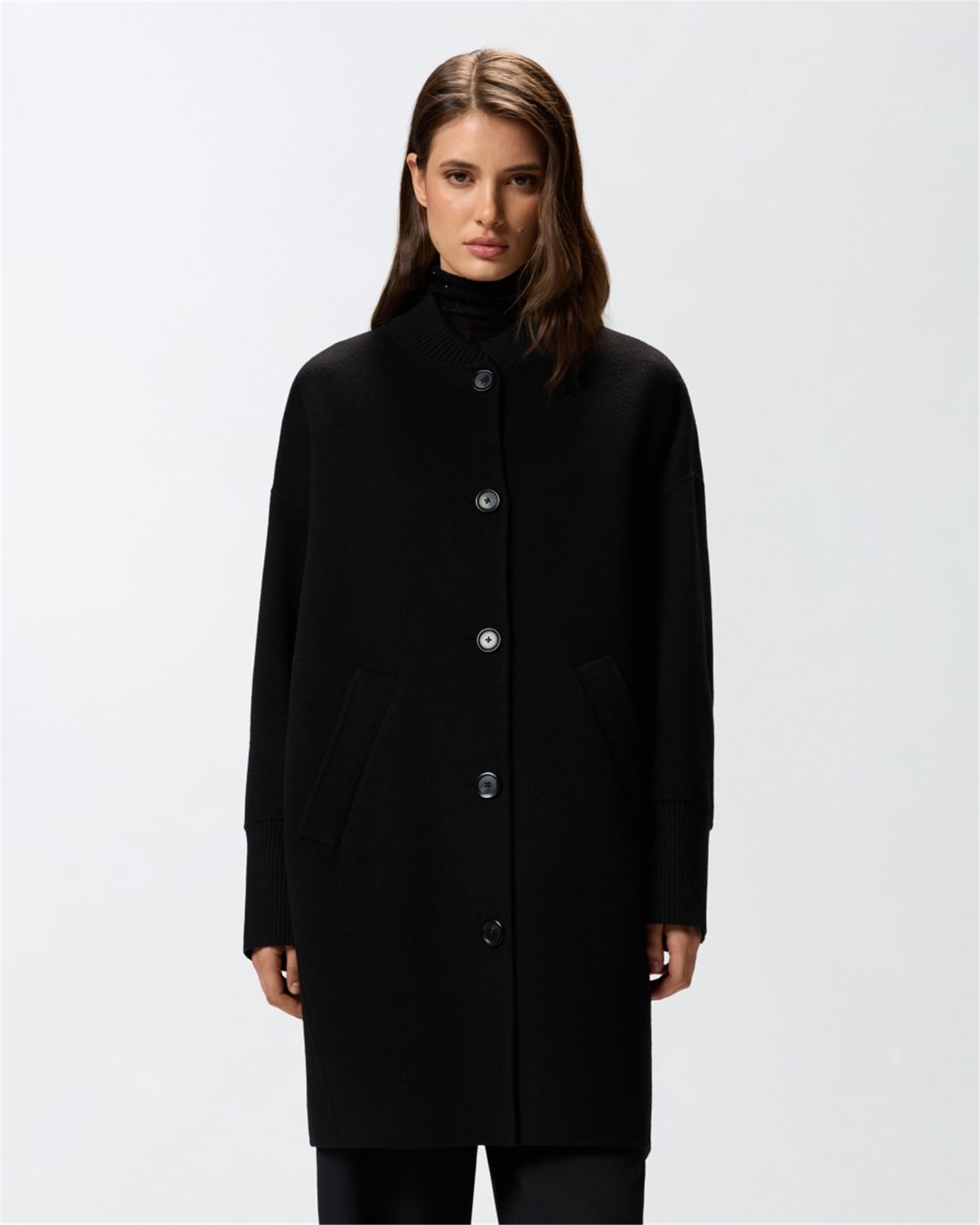 Cappotto cocoon foderato, dalla linea leggermente arrotondata, in panno double di misto lana. Il capospalla è completato da tasche oblique, da maniche lunghe con bottoni al fondo, e da una lavorazione in maglia a costine sul collo stile bomber e sui polsi alti. Chiusura con bottoni davanti. Nessun altro capospalla ti tiene al riparo dal freddo con classe come questo cappotto monopetto, perfetta unione di comfort e stile senza tempo.