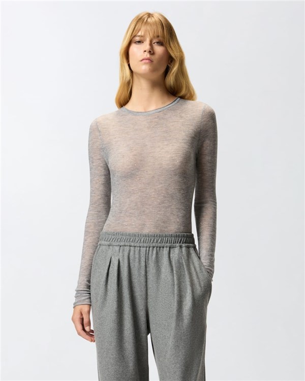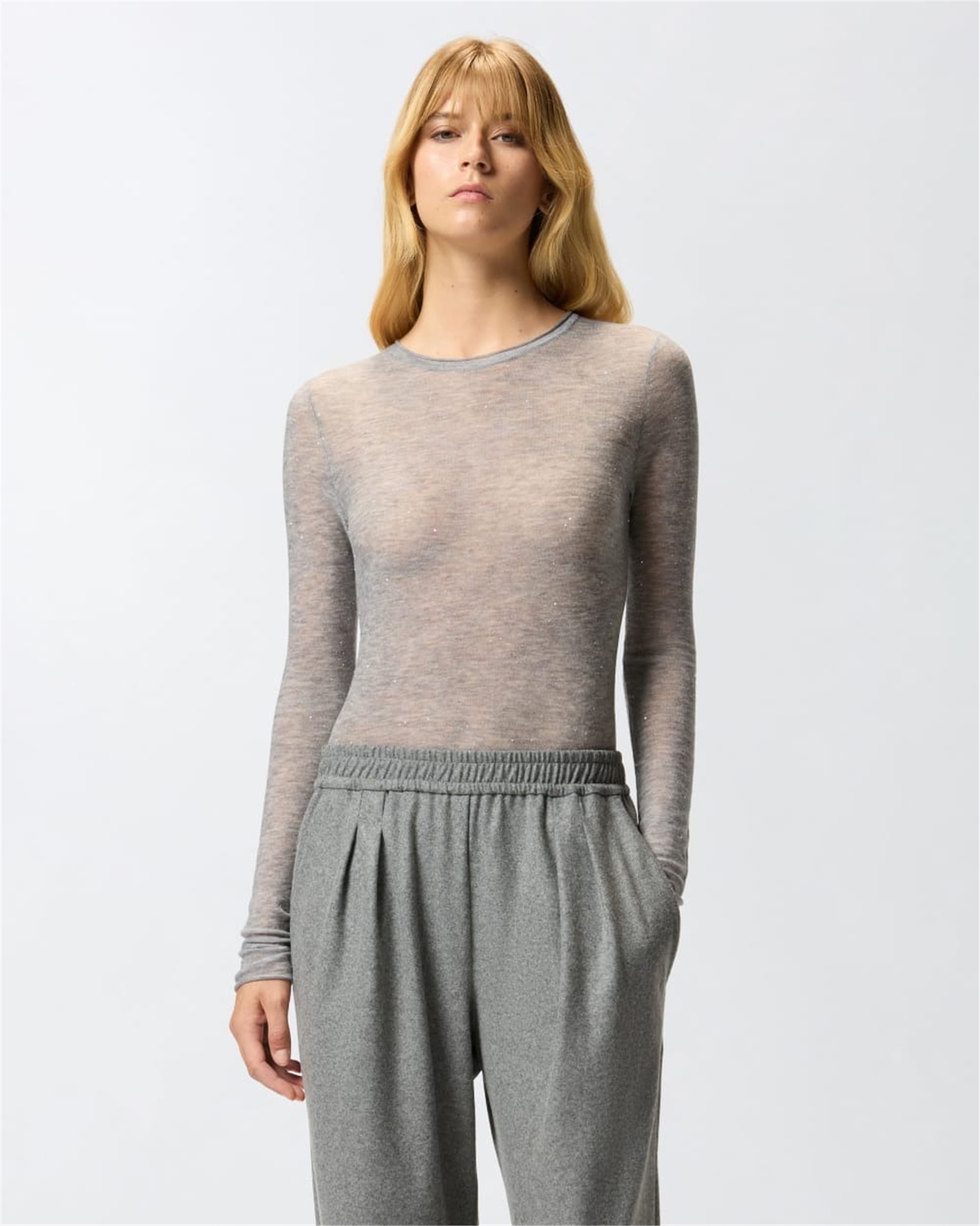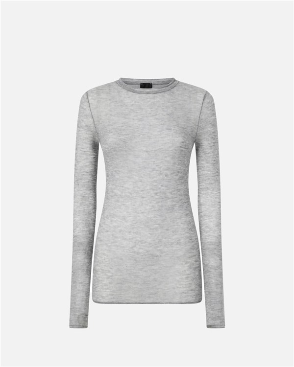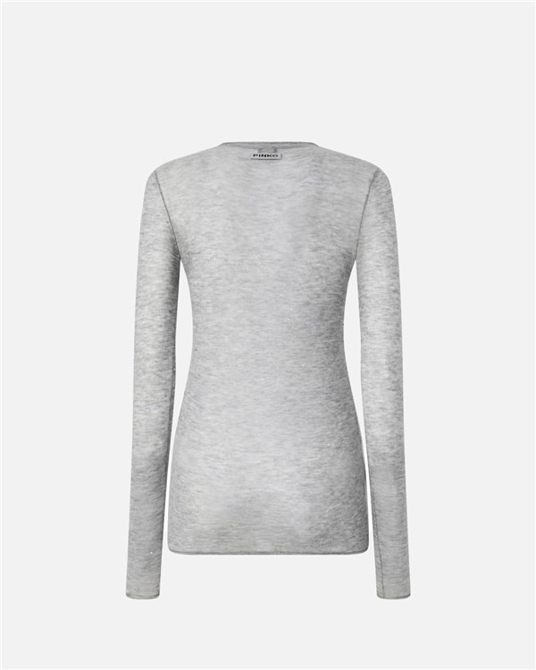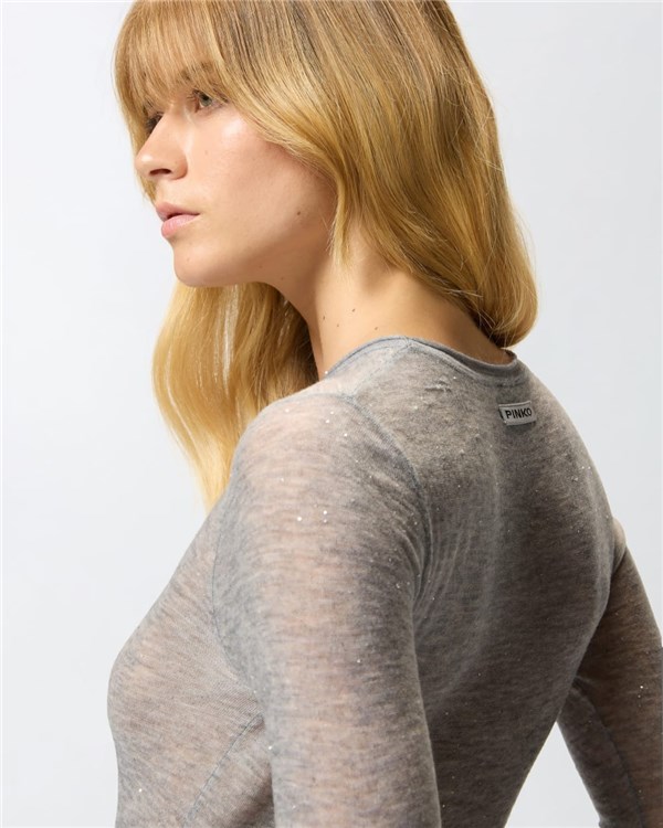 Maglia girocollo realizzata in misto lana semitrasparente: un filato leggero e morbido, quasi impalpabile, che contribuisce a creare un look sensuale e appariscente. Il design è impreziosito da micro paillettes inserite nel filo e riesce nell'impresa di risultare luminoso e al tempo stesso essenziale e molto comodo all'indosso. Il capo è stato sottoposto a prove di finissaggio per ridurre al minimo la possibile formazione di pilling, garantendo una maggiore morbidezza e durabilità del tessuto. Il tocco finale è dato dall'etichetta con logo lettering PINKO sul retro.