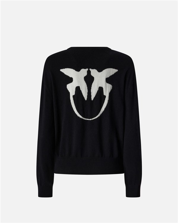 Maglione girocollo a maniche lunghe in pregiato misto lana e cashmere. L'inimitabile stile del brand viene espresso al massimo in questo capo, arricchito dal maxi logo Love Birds sul retro e dal logo lettering PINKO a contrasto sul davanti, lato cuore. Il capo è stato sottoposto a prove di finissaggio per ridurre al minimo la possibile formazione di pilling, garantendo una maggiore morbidezza e durabilità del tessuto. Il design è completato da girocollo, orlo e polsini lavorati a costine.