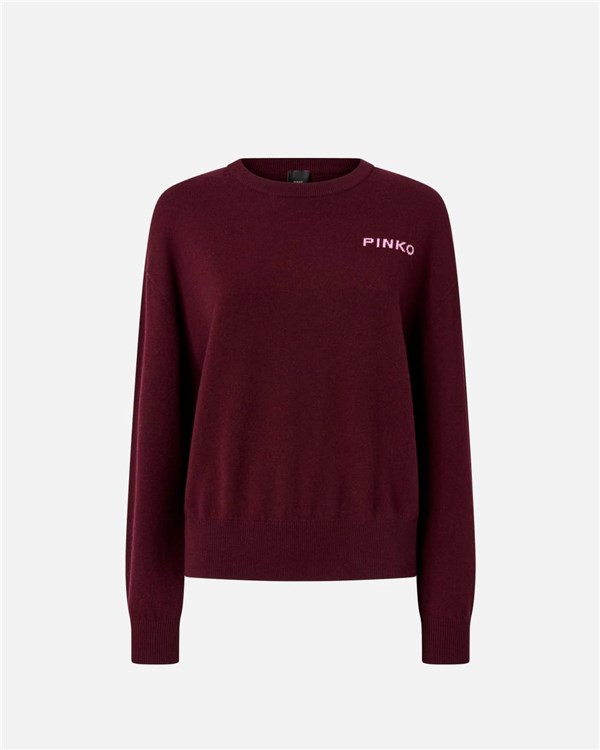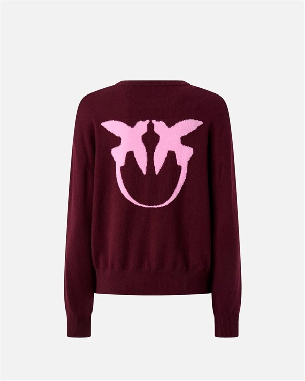 Maglione girocollo a maniche lunghe in pregiato misto lana e cashmere. L'inimitabile stile del brand viene espresso al massimo in questo capo, arricchito dal maxi logo Love Birds sul retro e dal logo lettering PINKO a contrasto sul davanti, lato cuore. Il capo è stato sottoposto a prove di finissaggio per ridurre al minimo la possibile formazione di pilling, garantendo una maggiore morbidezza e durabilità del tessuto. Il design è completato da girocollo, orlo e polsini lavorati a costine.