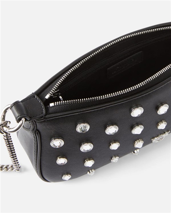 Borsa a spalla piccola Mini Half Moon Baguette in pelle con strass