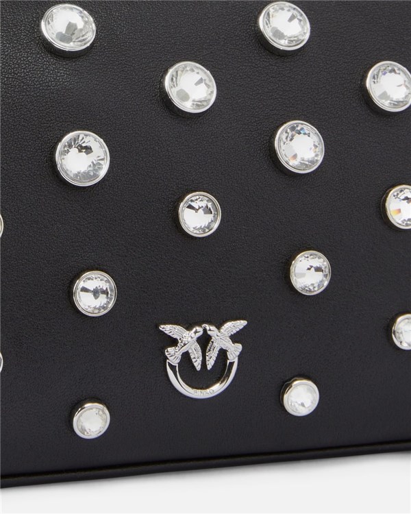 Borsa a spalla piccola Mini Half Moon Baguette, dalla forma rettangolare e allungata, realizzata in pelle con chiusura a zip per contenere tutti i tuoi essenziali. I protagonisti indiscussi dell'accessorio sono i luminosissimi strass di varie dimensioni sul davanti, accompagnati dal piccolo logo Love Birds in metallo. Il modello presenta una sofisticata tracolla fissa a catena, che rende il modello comodo e perfetto per le tue serate all'insegna dello stile.