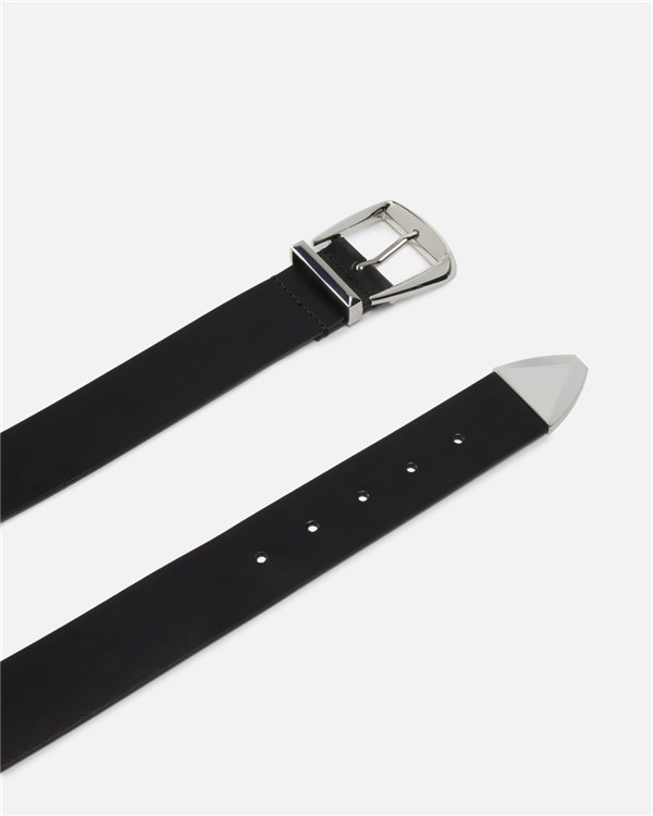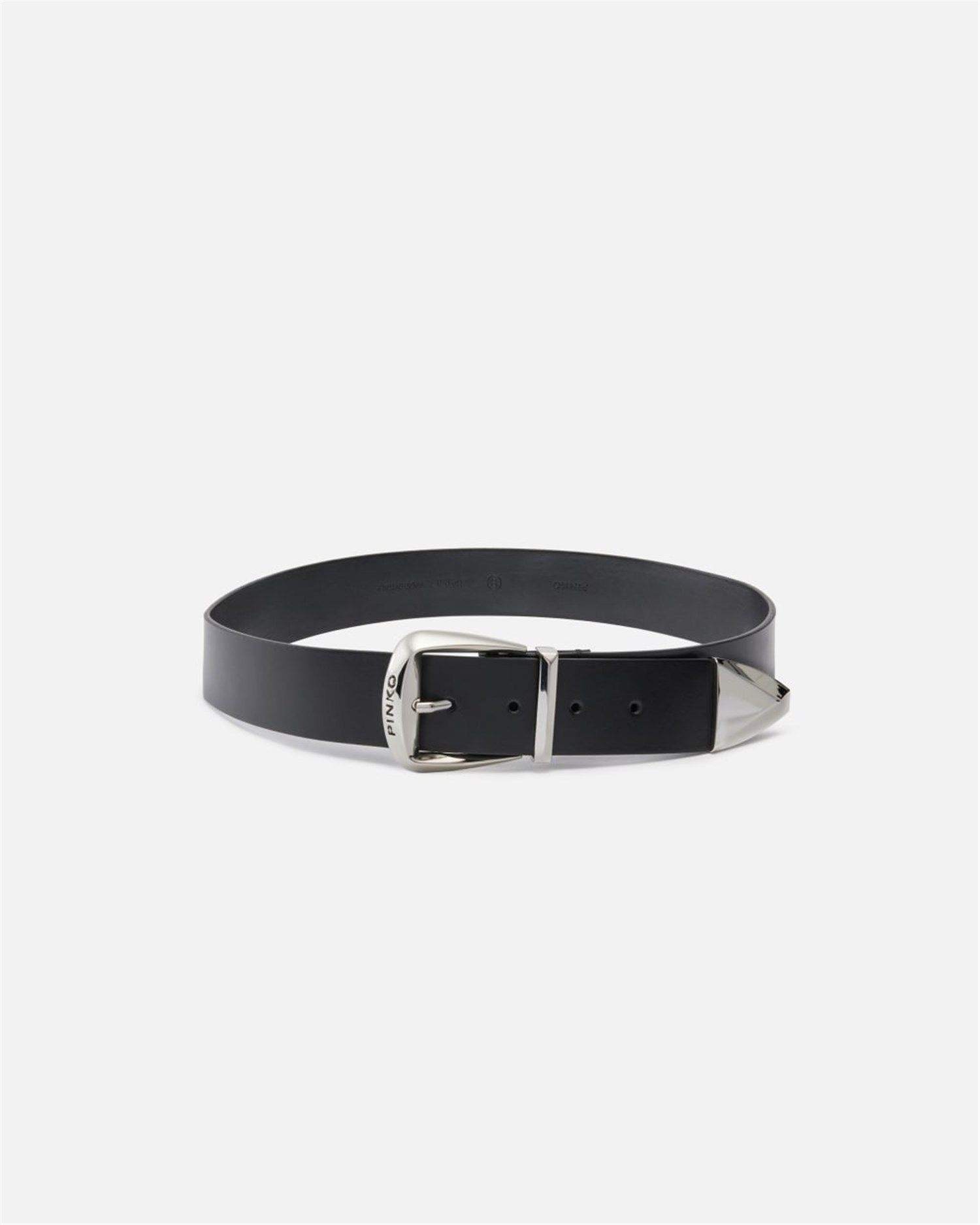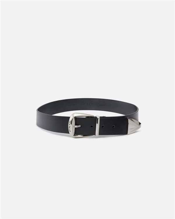 Cintura alta 4 cm realizzata in pelle liscia e dotata di un passante. Il modello si distingue per la fibbia con l'iconico logo lettering PINKO e l'estremità impreziosita dal dettaglio a punta, entrambi in metallo in galvanica argento. Essenziale ma d'impatto, questo accessorio è perfetto per un mood audace e di classe.
