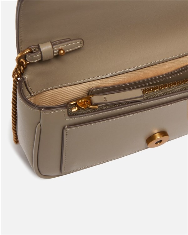 Borsa pochette da sera Pocket Love Bag in morbida pelle mano seta, dalla texture liscia. La chiusura con baccello in pelle e piccole borchie è completata da fibbia in metallo Love Birds Diamond Cut. L'interno, foderato in tessuto tecnico, comprende una pratica tasca con zip e altri due scomparti. La borsetta è completa di tracolla sottile in metallo, rimovibile: puoi decidere di indossarla a tracolla o di portarla a mano.
