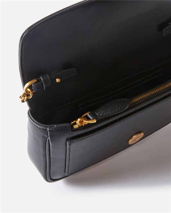 Borsa pochette da sera Pocket Love Bag in morbida pelle mano seta, dalla texture liscia. La chiusura con baccello in pelle e piccole borchie è completata da fibbia in metallo Love Birds Diamond Cut. L'interno, foderato in tessuto tecnico, comprende una pratica tasca con zip e altri due scomparti. La borsetta è completa di tracolla sottile in metallo, rimovibile: puoi decidere di indossarla a tracolla o di portarla a mano.