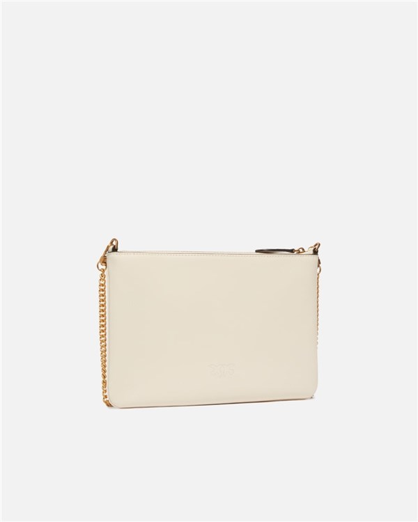 Borsa a tracolla flat in morbida pelle mano seta. Personalizzazione con placchetta Love Birds Diamond Cut. Interno foderato in polycotton e tracolla rimovibile a catena sottile. Chiusura con zip.