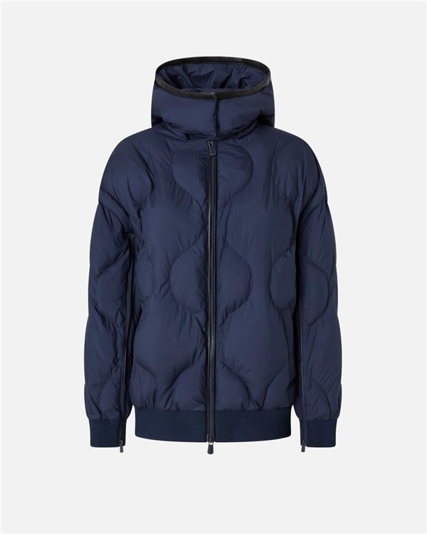 Bomber imbottito con trapuntatura a cipolla realizzato in comoda e resistente tela tecnica e rifinito da collo, polsini e fondo in maglia a costine. Il design è caratterizzato un cappuccio staccabile con zip e da maniche lunghe che si possono aprire tramite zip per trasformare il capo in una mantella. È completato da rifiniture con effetto spalmato sul bordo del cappuccio e lungo la chiusura frontale con cerniera a doppio cursore. Un capo ideale per affrontare i primi freddi con un tocco di stile che non rinuncia alla comodità.