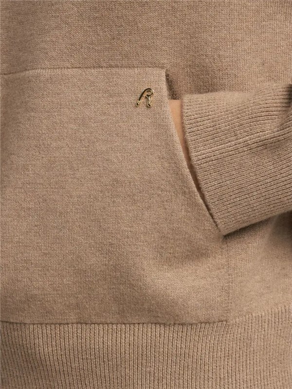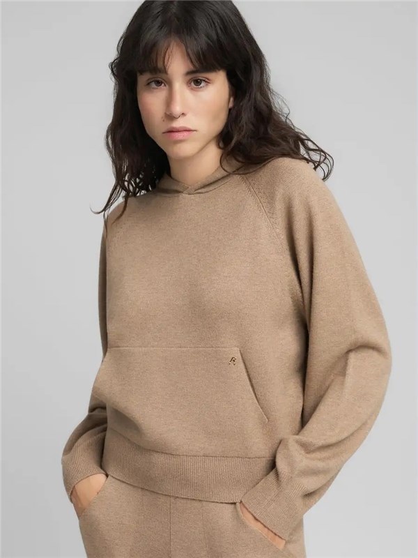 Felpa con cappuccio realizzata in maglia di misto viscosa per una sensazione di morbidezza e comfort. Il modello a maniche lunghe raglan a palloncino è caratterizzato da una lavorazione a costine su collo, polsini e fondo capo. Completa il capo una tasca frontalea marsupio, sulla quale figura l'iconico ricamo R.
