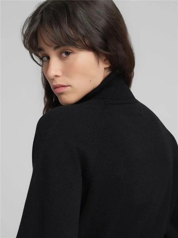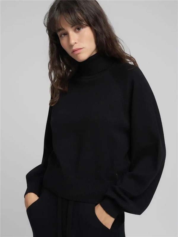 Pullover a collo alto da donna realizzato in misto viscosa per una sensazione di morbidezza e comfort. Il modello a maniche lunghe raglan a palloncino è caratterizzato da una lavorazione a costine su collo, polsini e fondo capo. Completa il design il dettaglio R metallico, simbolo del brand, sul fianco.