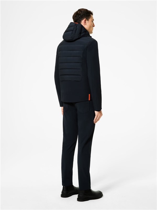 Il design composito e hi-tech conferma Montecristo Thermo Hybrid Hood Zip Jkt una protagonista versatile dei giorni più intensi della mezza stagione. L'allure contemporanea e la ricercatezza dei materiali sono sottolineate sul davanti, sulla schiena e sul cappuccio fisso dagli inserti nei canali tubici, che racchiudono l'imbottitura in piuma d'anatra 90/10 senza cuciture, per una texture senza interruzioni visuali. Il tessuto stretch a membrana Stratofabric#3, leggero e traspirante, assicura il massimo del comfort e dell'agilità ai movimenti delle braccia e del busto, mentre il look super opaco dello shell gioca a contrasto con la finitura lucida dei canali tubici. La giacca presenta la zip con chiusura a calamita e tasche laterali a zip invisibile. Il cappuccio avvolgente e regolabile con coulisse offre protezione al capo. La fodera in caldo e morbido velluto è impreziosita dal taschino con zip invisibile e doppio filetto arancione fluo. Il logo a microiniezione nero sulla manica sinistra firma una giacca dallo stile fortemente urban, disponibile nei toni scuri di stagione.
