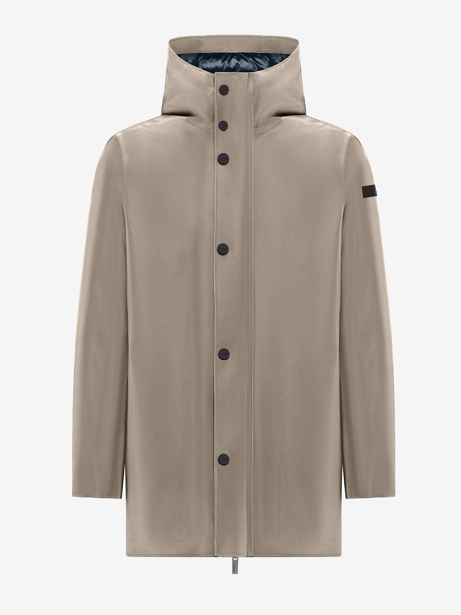 Questa reinterpretazione hi-tech del design parka rivela un capospalla invernale unico e sorprendente, per la sua raffinata costruzione e la curatissima scelta dei materiali. L'originale look cangiante del tessuto a membrana Stratofabric#3 è ottenuto grazie alla particolare spalmatura a silicone. Con la costruzione a taglio laser e incollaggio a caldo, il procedimento rende il parka impermeabile e a prova degli agenti atmosferici. La sua eleganza minimalista è sottolineata dal design essenziale, accentuato dalla patta a bottoni a pressione gommati che nasconde la zip metallica a doppio cursore. Questa sale a chiudere il cappuccio avvolgente imbottito, per un'efficace protezione dal vento e dalla pioggia. L'isolamento termico è assicurato dalla morbida imbottitura in piuma d'anatra 90/10, contenuta dai canali tubici totalmente privi di impunture. Il suo innovativo sistema Floating Shield presenta un'intercapedine che aumenta il comfort e consente una vestibilità diritta e impeccabile. L'interno è provvisto dal taschino chiuso dalla zip invisibile e ravvivato dal doppio filetto arancione fluo, accanto alla tag a cuore "Made with love, designed in Tuscany". Il logo a microiniezione nero sulla manica sinistra completa il parka con una nota iconica.