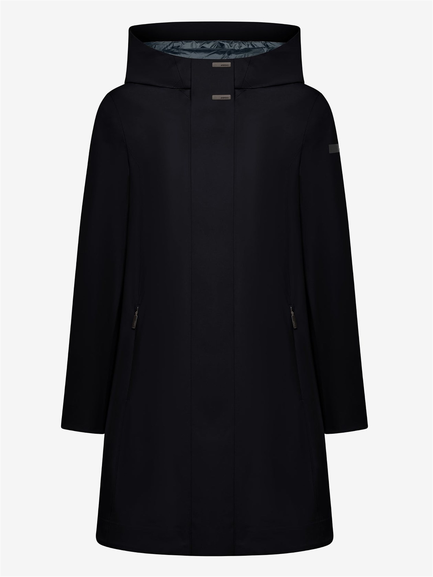 La giacca invernale di lunghezza media si caratterizza per il design funzionale e minimalista, che la rende unica per praticità, isolamento e protezione dal freddo e dalla pioggia. Realizzata in tessuto a membrana impermeabile e traspirante, presenta l'esterno in esclusivo Montecristo dal look opaco e liscio al tatto. L'innovativo sistema floating shield offre un abbraccio di calore dal fit impeccabile, grazie ai canali tubici che contengono l'imbottitura in piuma d'anatra. Il cappuccio, anch'esso imbottito, presenta un design essenziale e raffinato che incornicia delicatamente il viso. Sul davanti, la chiusura a zip è nascosta dalla patta impreziosita dai bottoni a barretta gun metal, che donano un tocco di eleganza contemporanea. Per la sua versatilità, la giacca è ideale nell'aggiungere un twist glam nella creazione di look decisi e distintivi, in abbinamento alla camicia dal taglio maschile e al morbido pantalone palazzo.