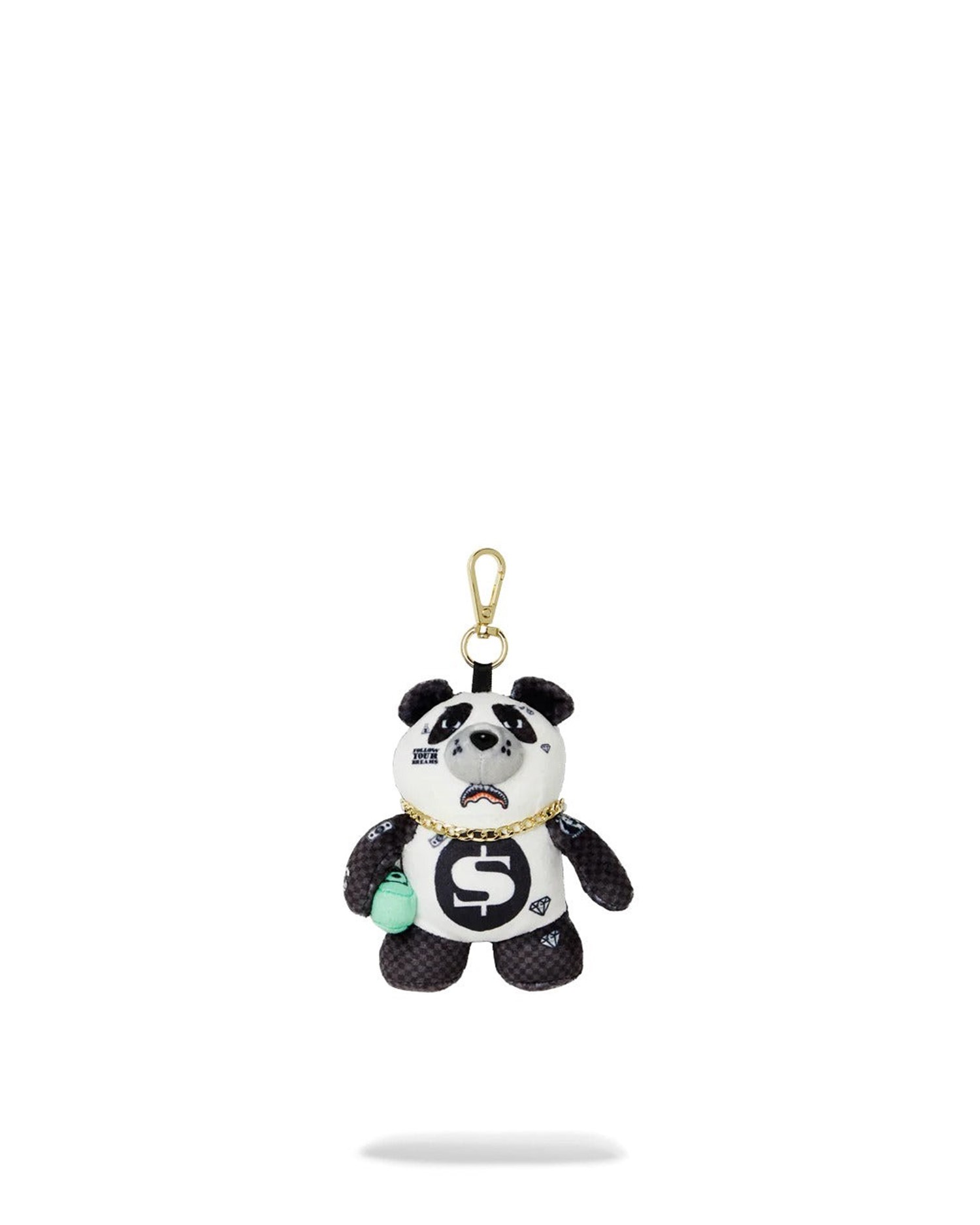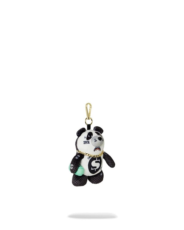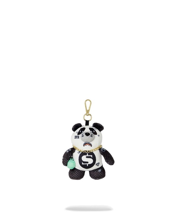 Portachiavi unisex Sprayground a forma di Panda di peluche nei colori bianco e nero, include anello portachiavi in metallo dorato.