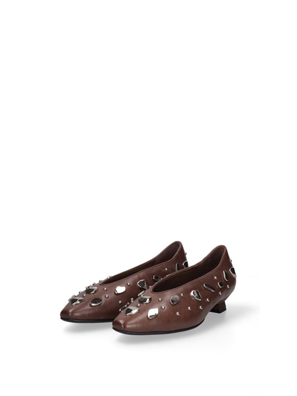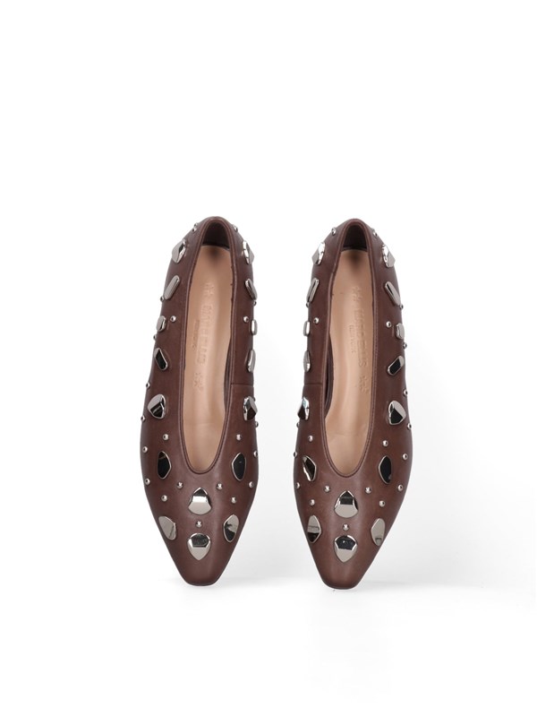 Bellerine a punta con tacco quadrato realizzate in 100% pelle firmate Marc Ellis, presentano un'apertura scollata e sono decorate con applicazioni a contrasto metalliche su tutta la superficie.
