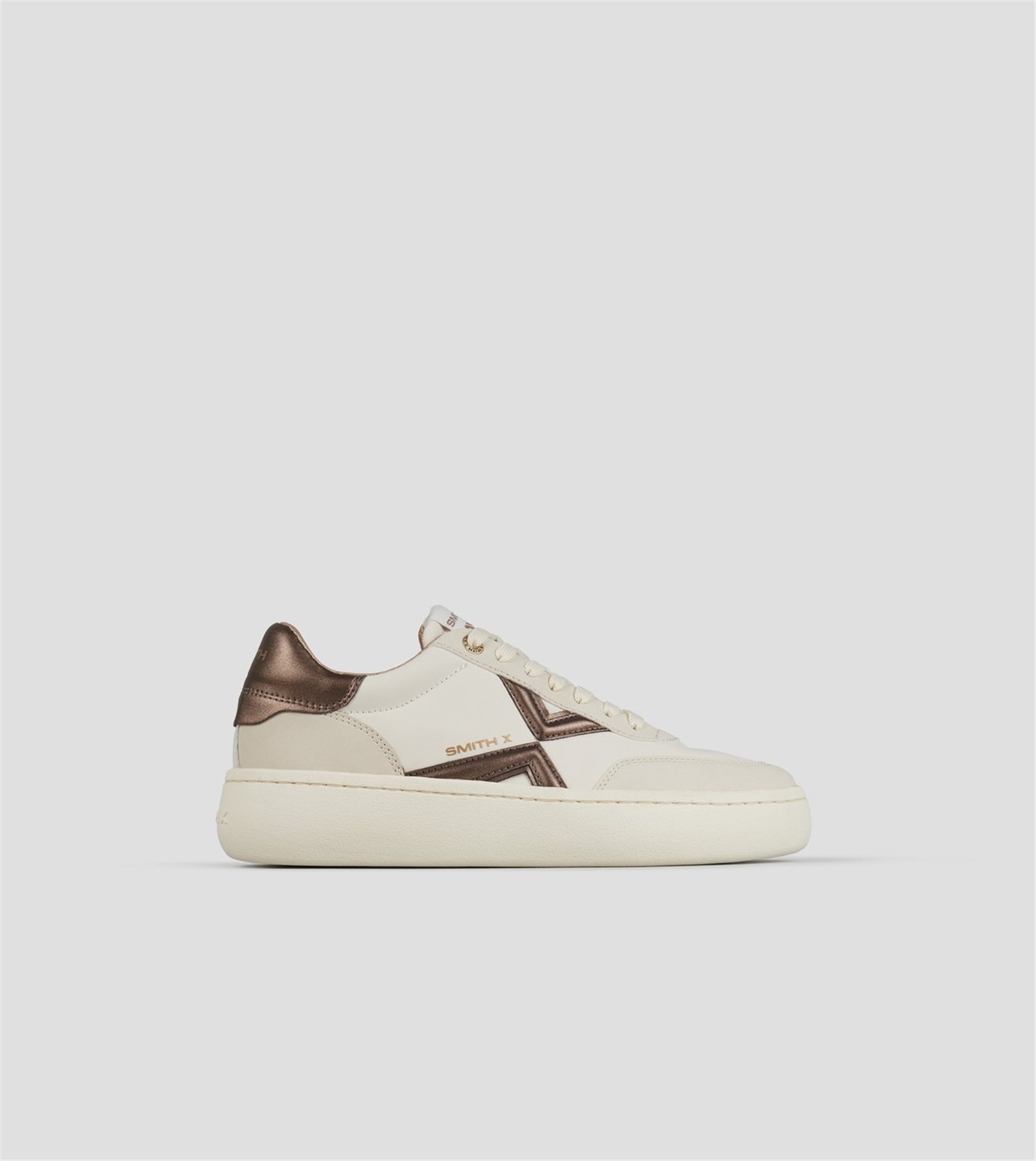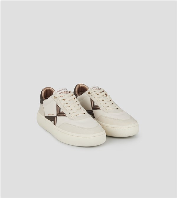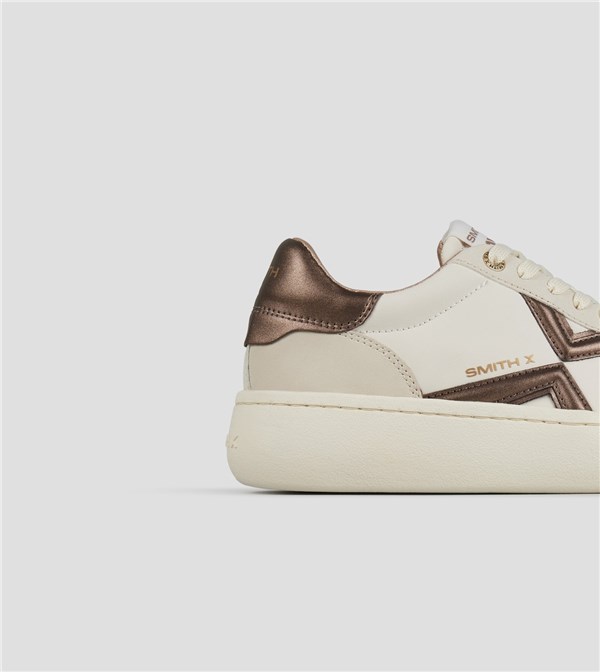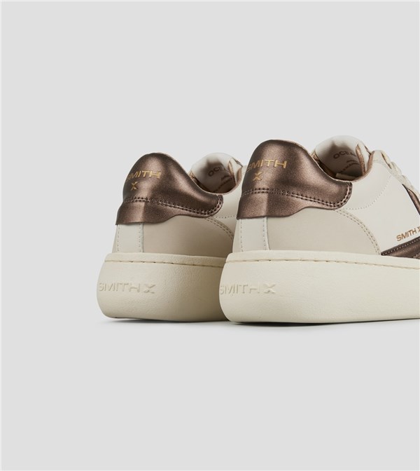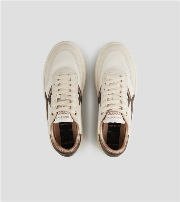 Sneakers Ocean Donna in bianco con logo laterale e tallone in bronzo laminato