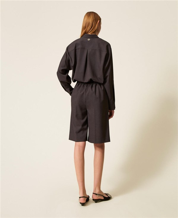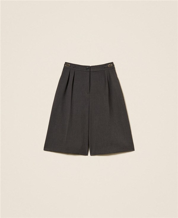 Bermuda in misto viscosa con dettaglio di fibbie logate Oval T in vita. Ha chiusura con zip e bottone, tasche alla francese ai fianchi, riprese davanti, piega stirata, linea morbida. Questo articolo fa parte della selezione 'Archive', ispirata dai capi più iconici e amati delle collezioni Twinset.