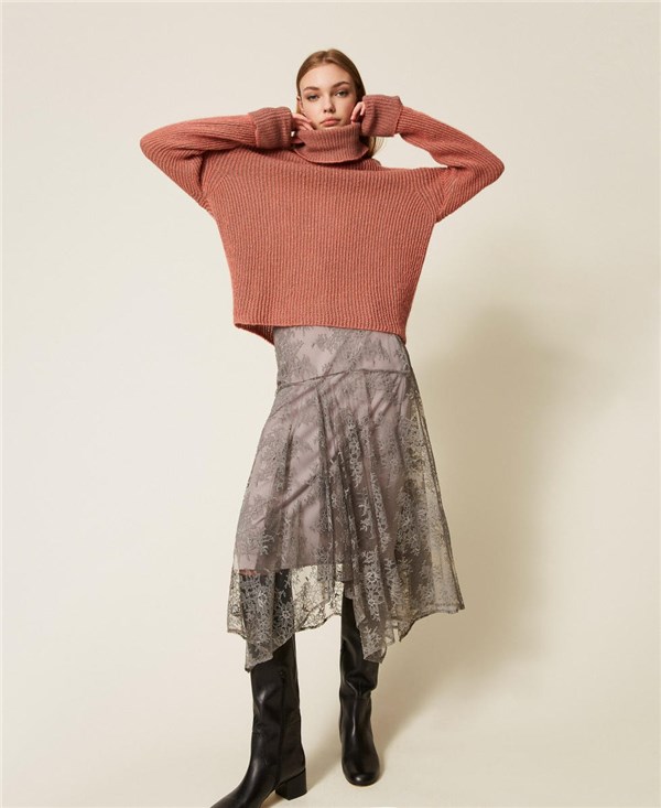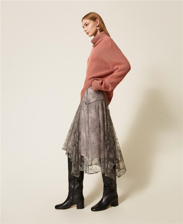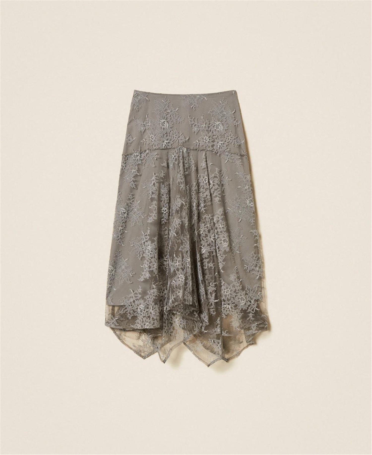 Gonna lunga in pizzo con taglio baschina sagomato che crea drappeggio e punte al fondo, chiusura con zip al fianco, fodera, linea morbida. Questo articolo fa parte della selezione 'Archive', ispirata dai capi più iconici e amati delle collezioni Twinset.