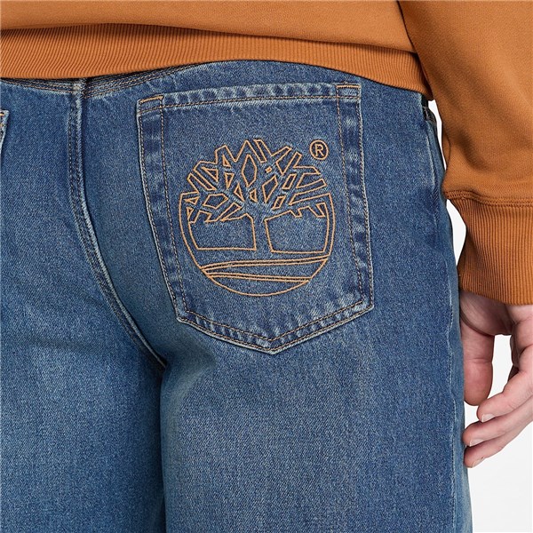 Realizzati in 100% denim di cotone riciclato, i pantaloni ricamati Sandown presentano una silhouette rilassata e morbida con il classico design a cinque tasche. Rifiniti con logo Timberland cucito e resistente chiusura con bottone e patta progettata per l'uso quotidiano.